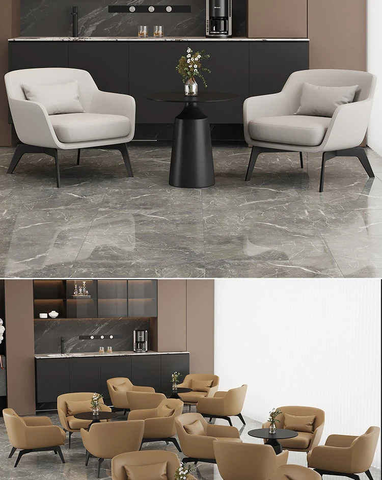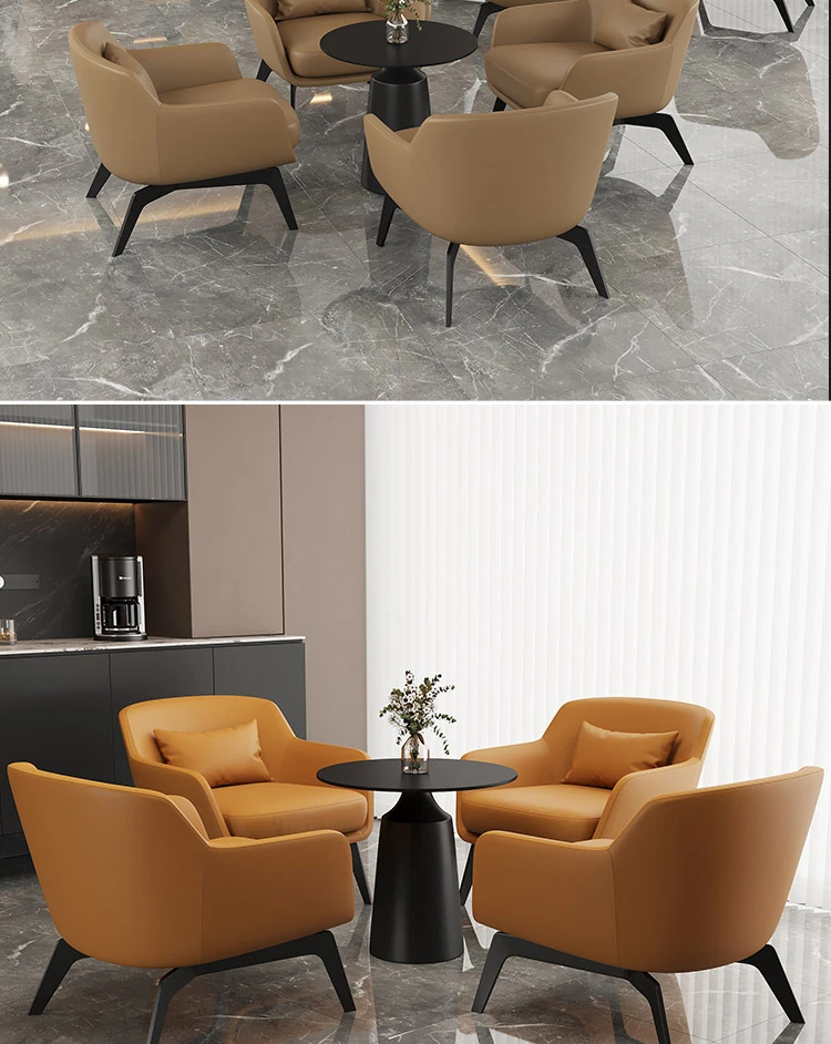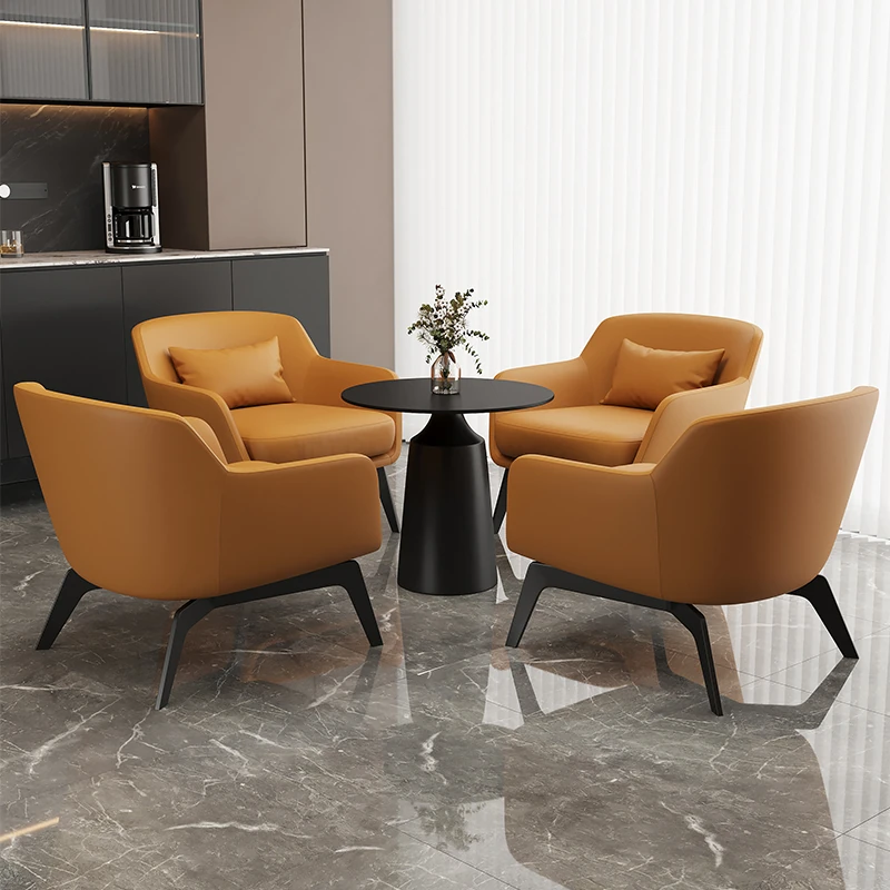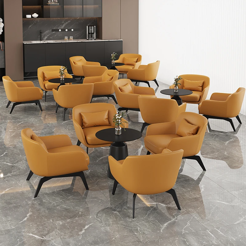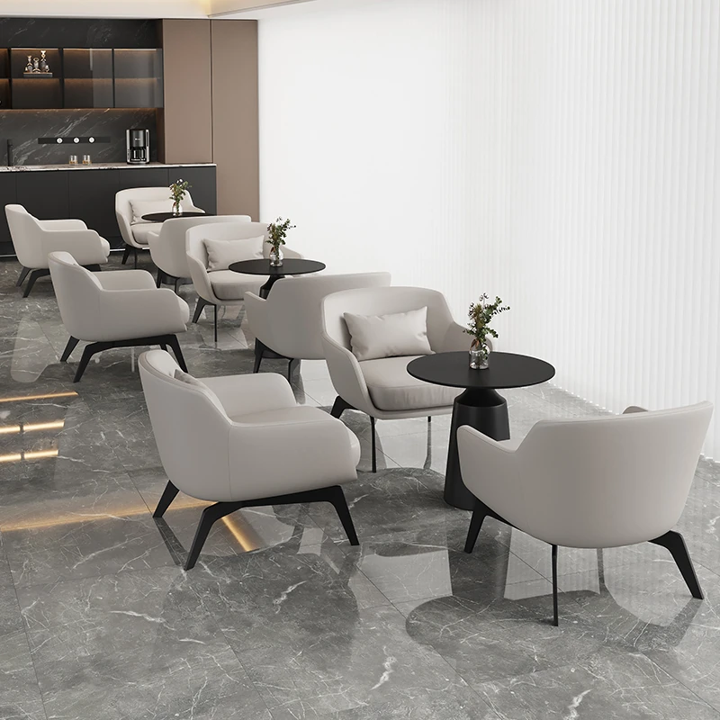 モダンシンプルな一人用リラックスチェア&ロビー談話テーブルセット - デザイナーによるホテル受付や展示会に最適なソファ!洗練されたデザインで、居心地の良い空間を演出します。