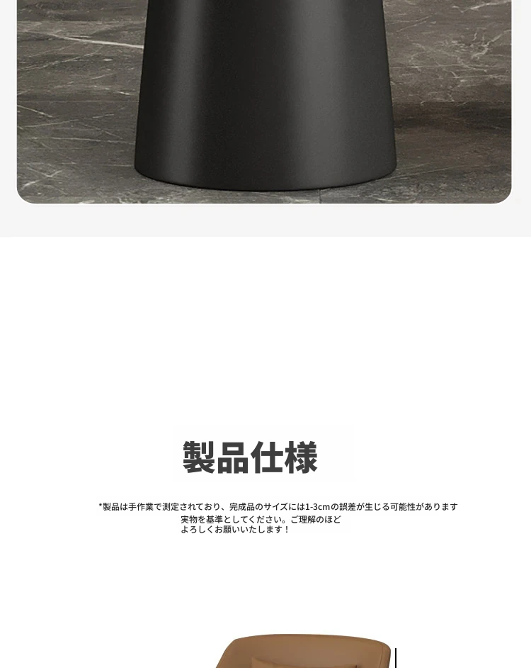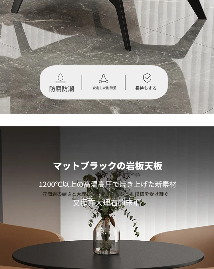 円形テーブル:70*60cm【マットブラックの岩板天板/カーボンスチール】