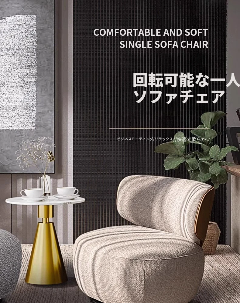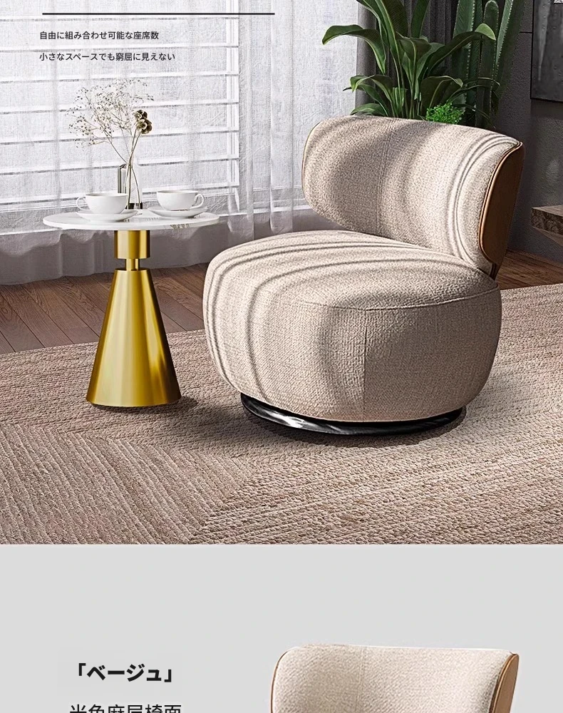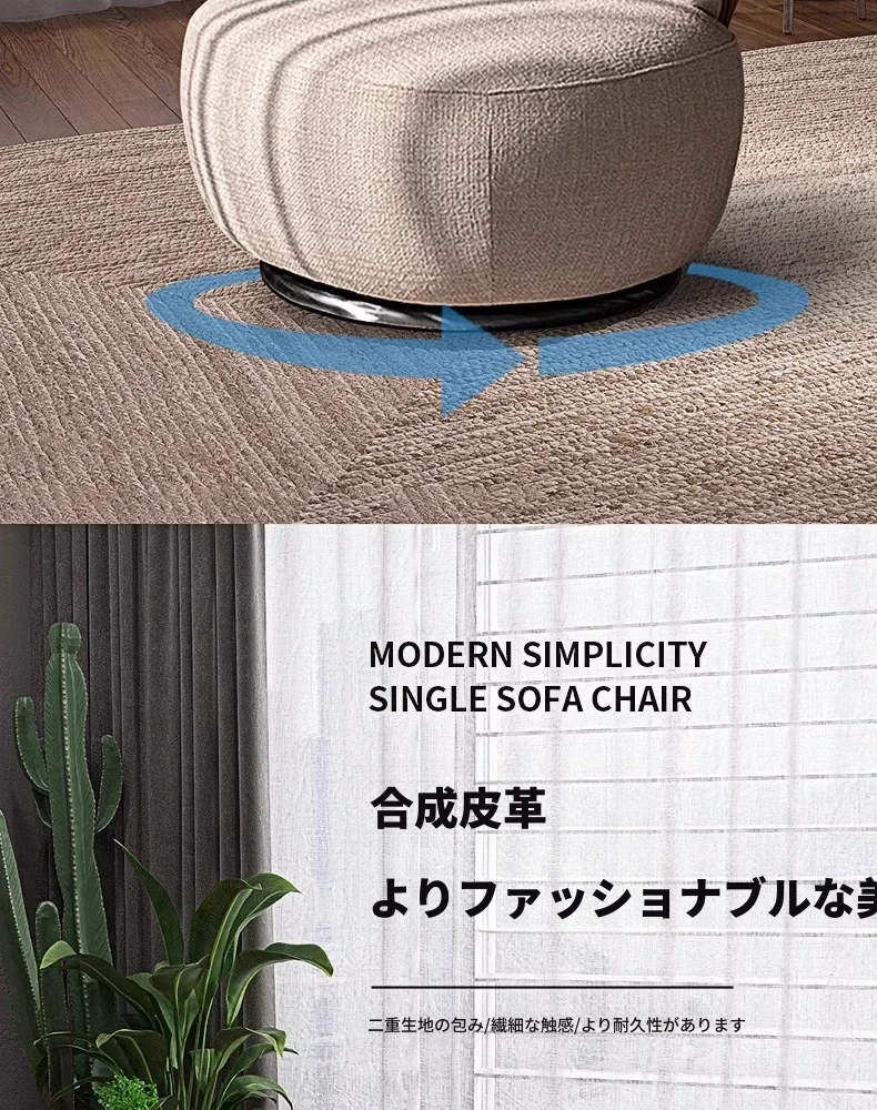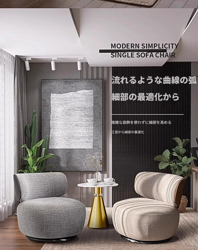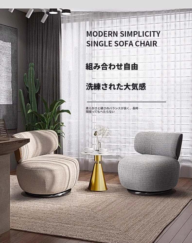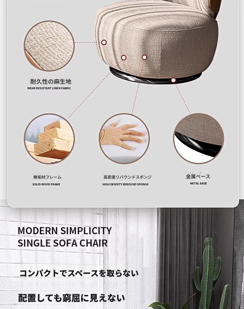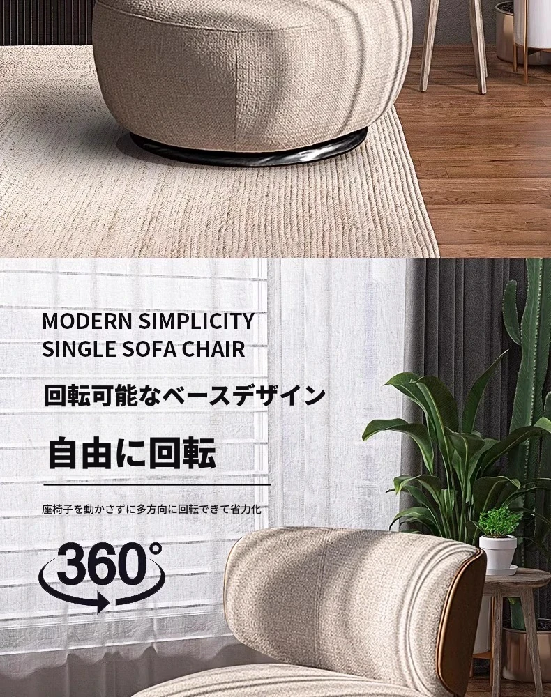 モダンシンプルな一人用回転ソファチェア|カフェやリラックススペースに最適|寝室や家庭用、バルコニー、民宿にもぴったり|読書や接客に最適なデザイン!