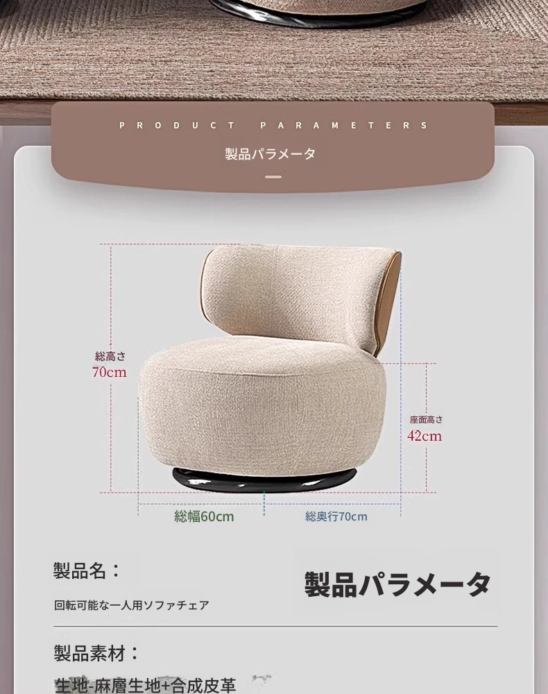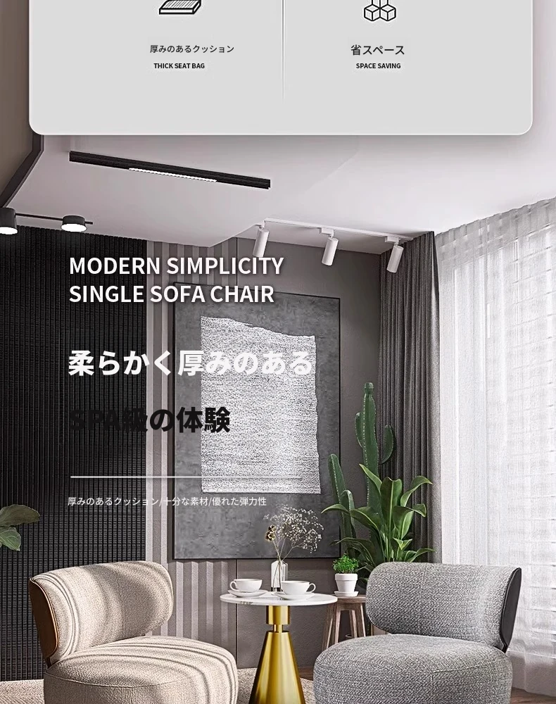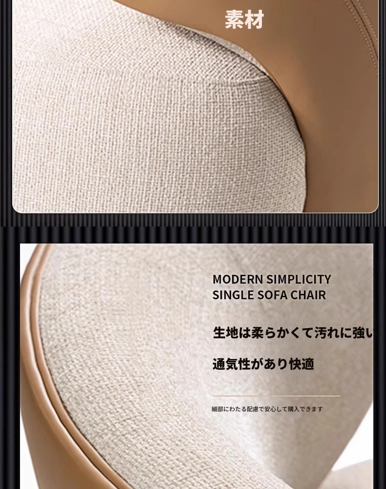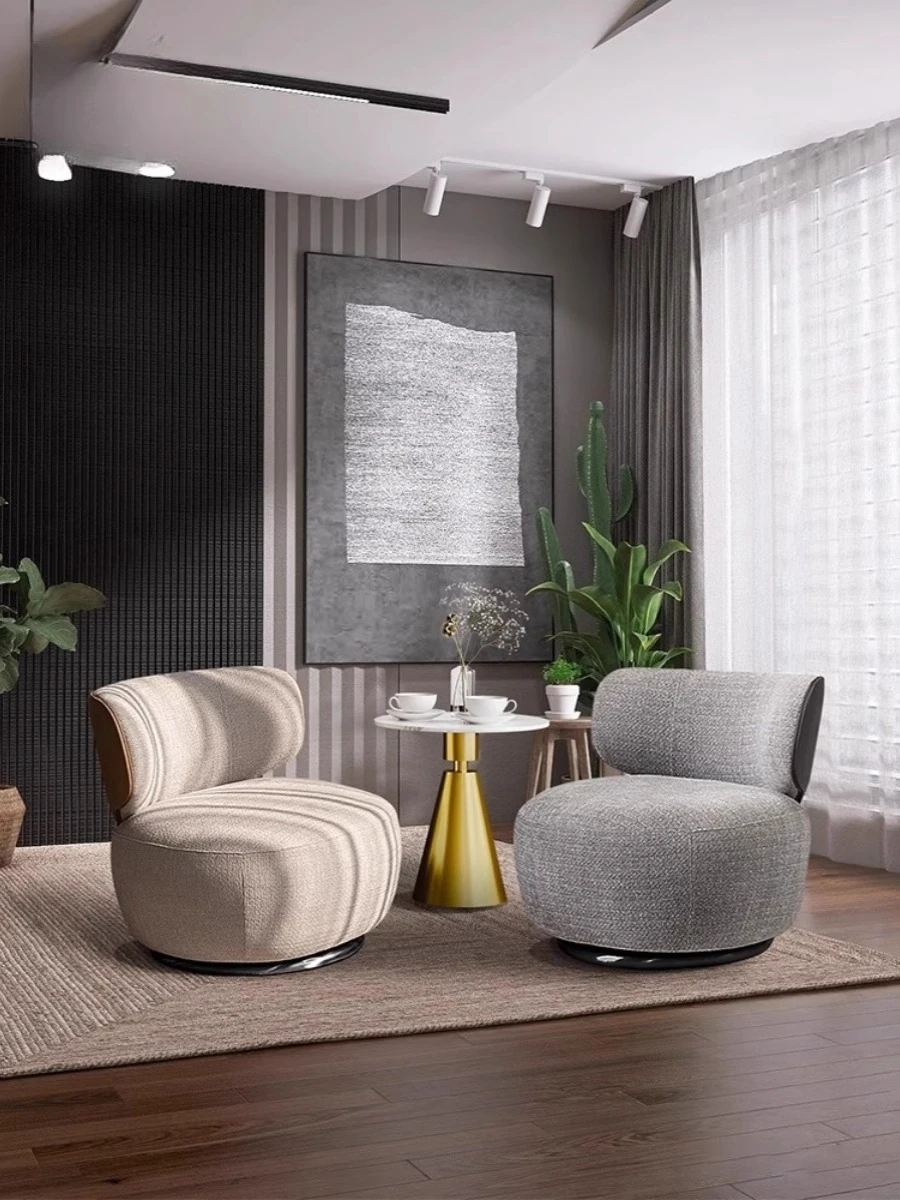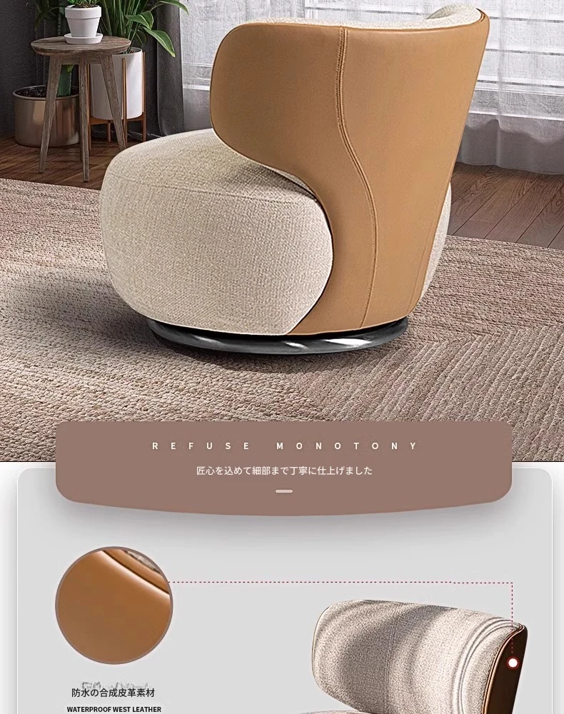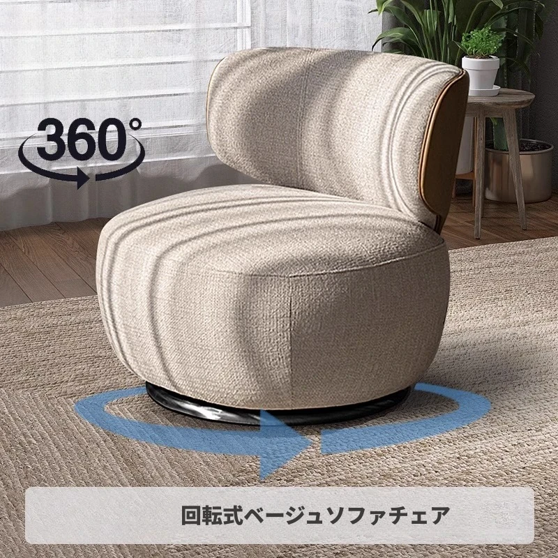 モダンシンプルな一人用回転ソファチェア|カフェやリラックススペースに最適|寝室や家庭用、バルコニー、民宿にもぴったり|読書や接客に最適なデザイン!