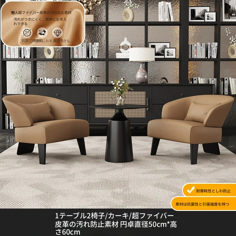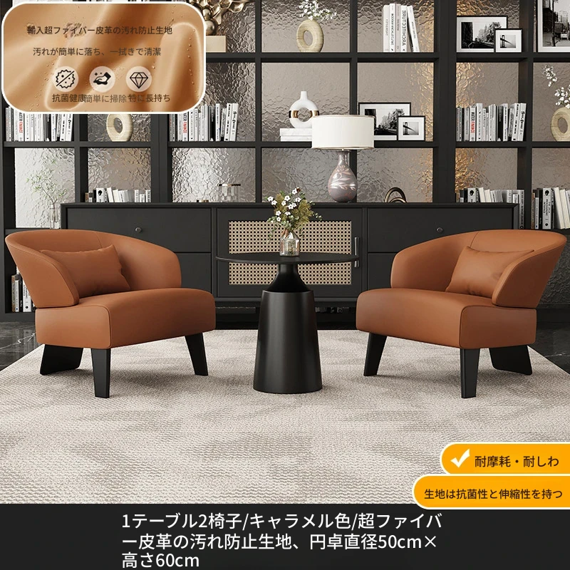 1テーブル2椅子+円卓50*60cm【キャラメル色/超ファイバー皮革汚れ防止生地/カーボン鋼】
