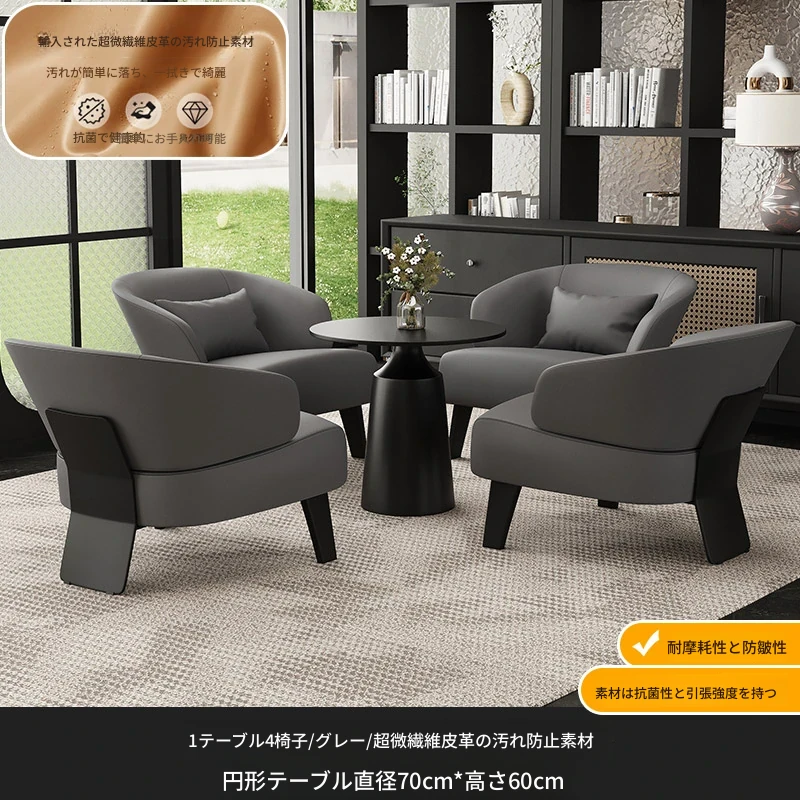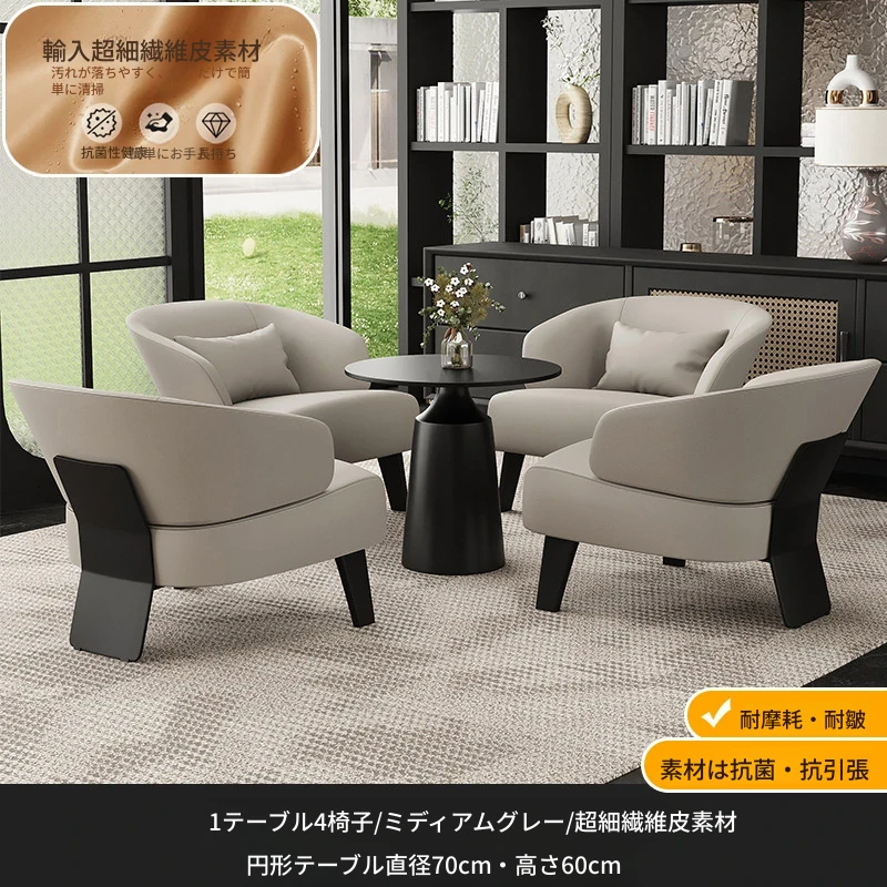 1テーブル4椅子+円卓70*60cm【ミディアムグレー/超ファイバー皮革汚れ防止生地/カーボン鋼】
