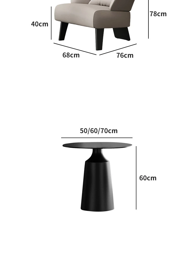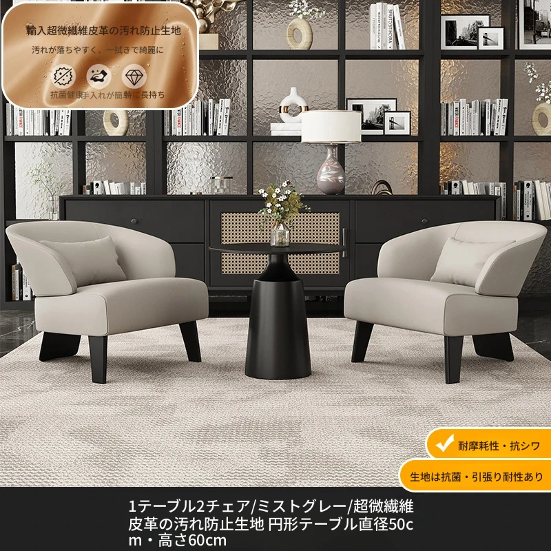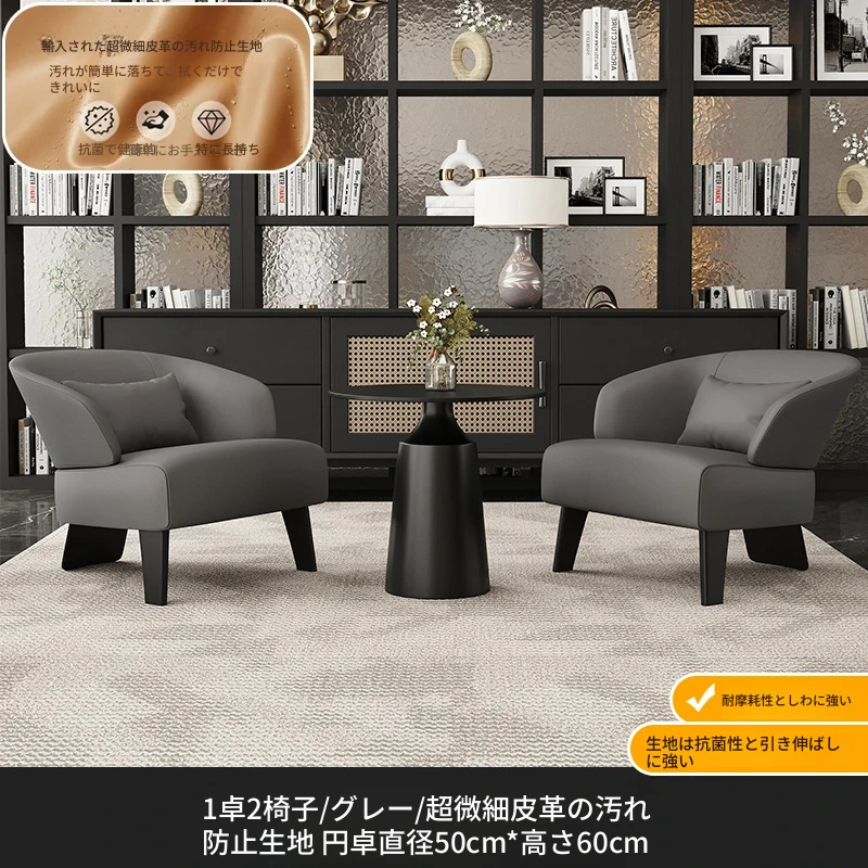 1テーブル2椅子+円卓50*60cm【ミディアムグレー/超ファイバー皮革汚れ防止生地/カーボン鋼】