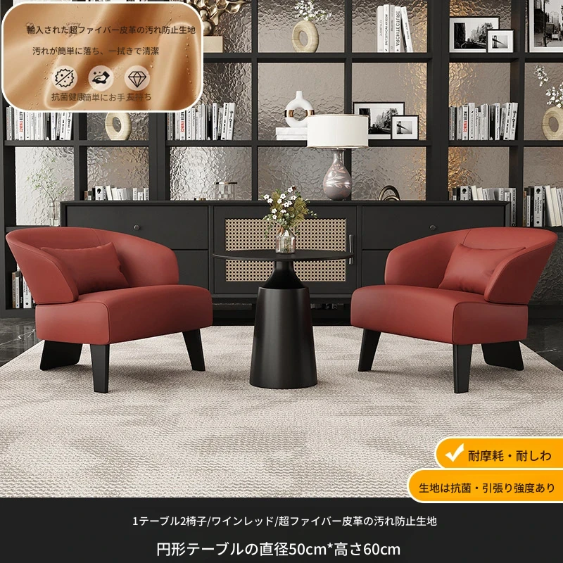 1テーブル2椅子+円卓50*60cm【ワインレッド/超ファイバー皮革汚れ防止生地/カーボン鋼】