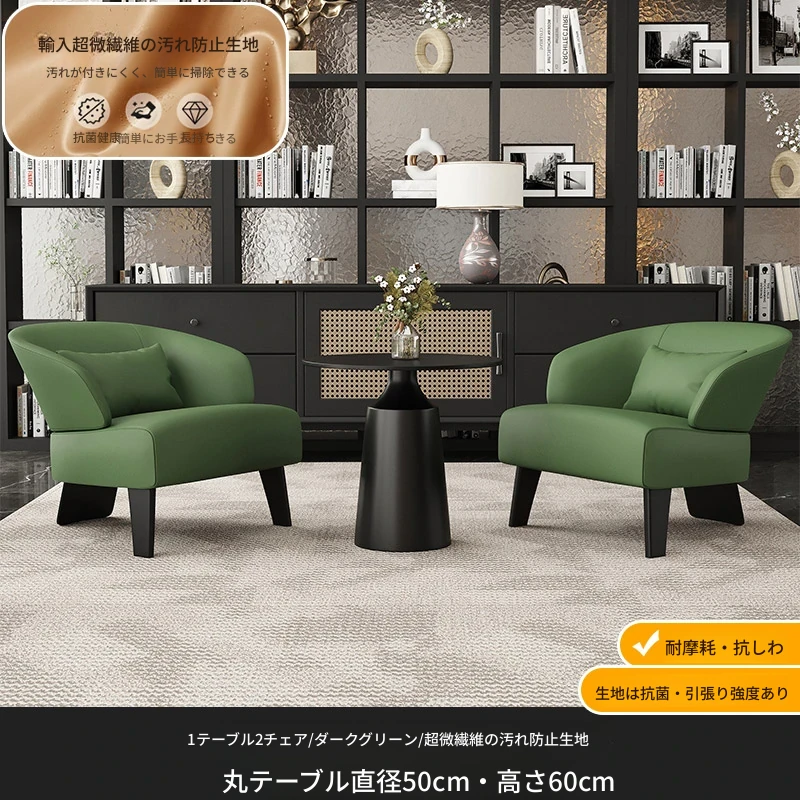 1テーブル2椅子+円卓50*60cm【墨緑/超ファイバー皮革汚れ防止生地/カーボン鋼】