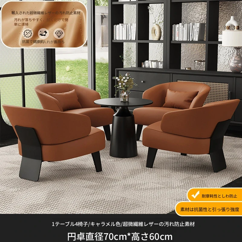 1テーブル4椅子+円卓70*60cm【キャラメル色/超ファイバー皮革汚れ防止生地/カーボン鋼】