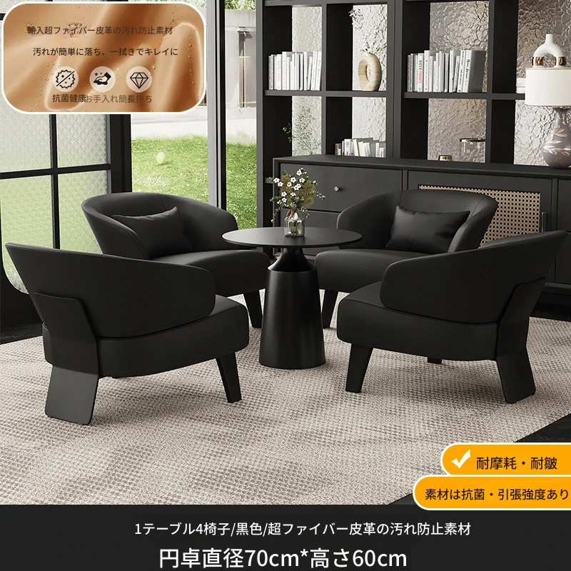 1テーブル4椅子+円卓70*60cm【ブラック/超ファイバー皮革汚れ防止生地/カーボン鋼】