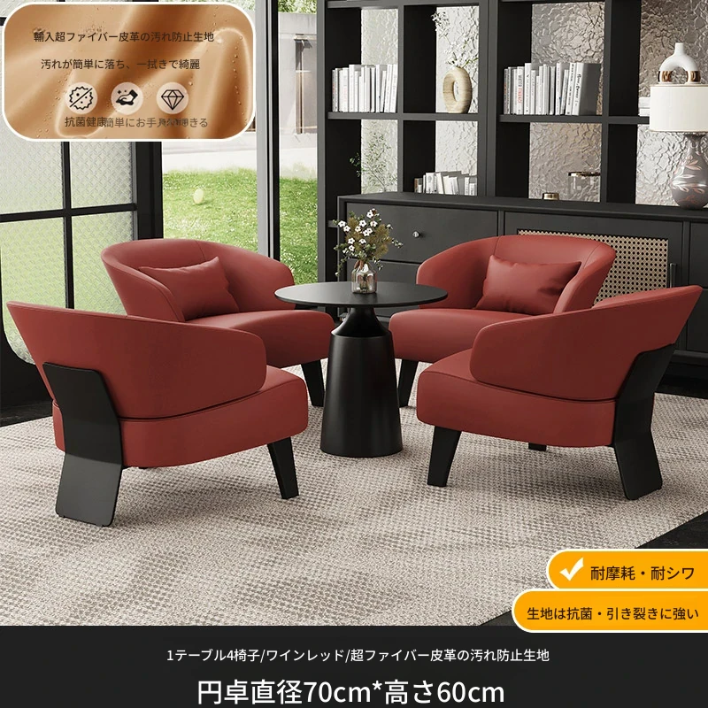 1テーブル4椅子+円卓70*60cm【ワインレッド/超ファイバー皮革汚れ防止生地/カーボン鋼】