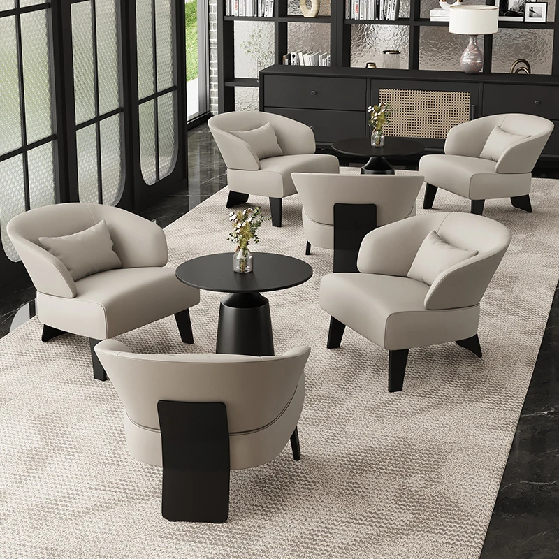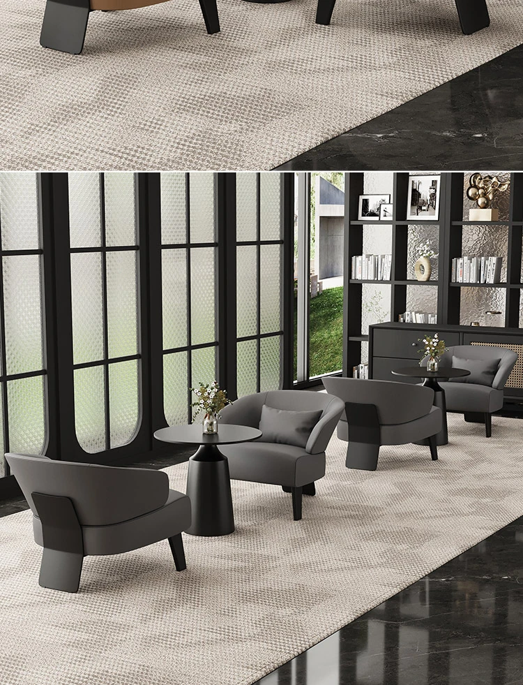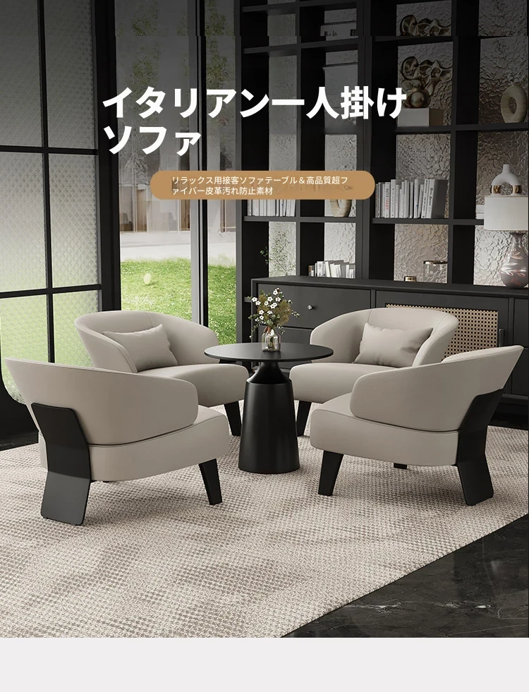 現代的な一人掛けソファ椅子|ホテル・民宿・カフェに最適!リラックスできるデザインのアームチェアとテーブルのセット|リビングやバルコニーでのくつろぎタイムにぴったり!