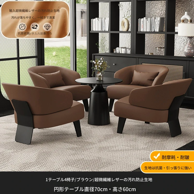 1テーブル4椅子+円卓70*60cm【ブラウン/超ファイバー皮革汚れ防止生地/カーボン鋼】