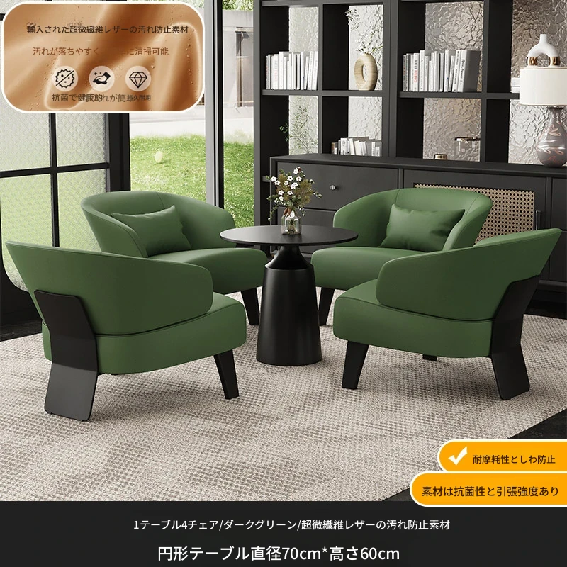 1テーブル4椅子+円卓70*60cm【墨緑/超ファイバー皮革汚れ防止生地/カーボン鋼】