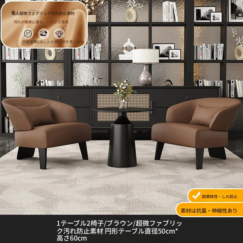 1テーブル2椅子+円卓50*60cm【ブラウン/超ファイバー皮革汚れ防止生地/カーボン鋼】