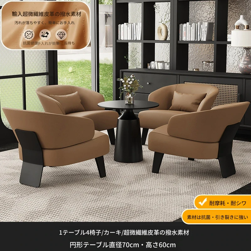 1テーブル4椅子+円卓70*60cm【カーキ色/超ファイバー皮革汚れ防止生地/カーボン鋼】