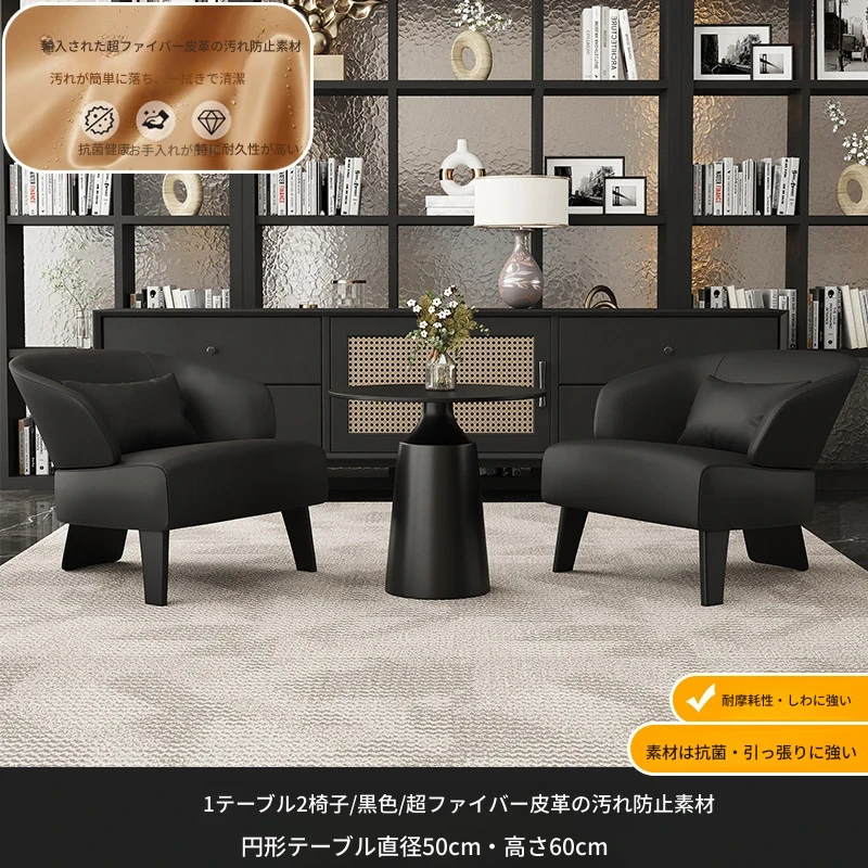 1テーブル2椅子+円卓50*60cm【ブラック/超ファイバー皮革汚れ防止生地/カーボン鋼】