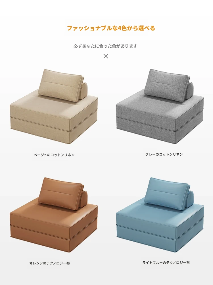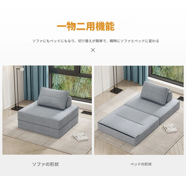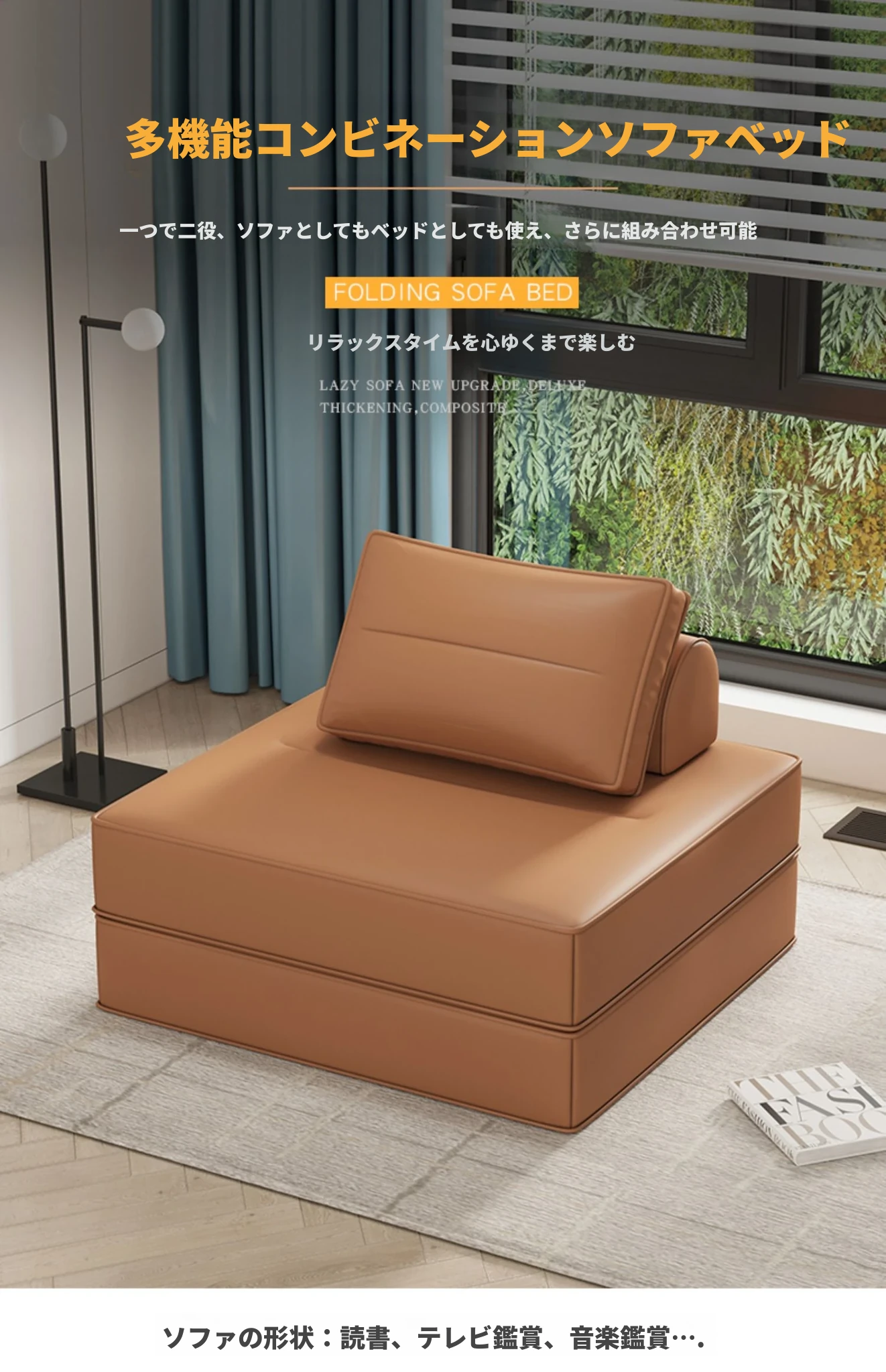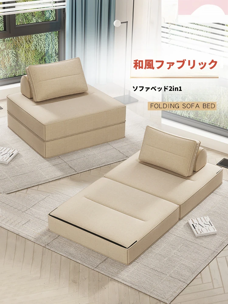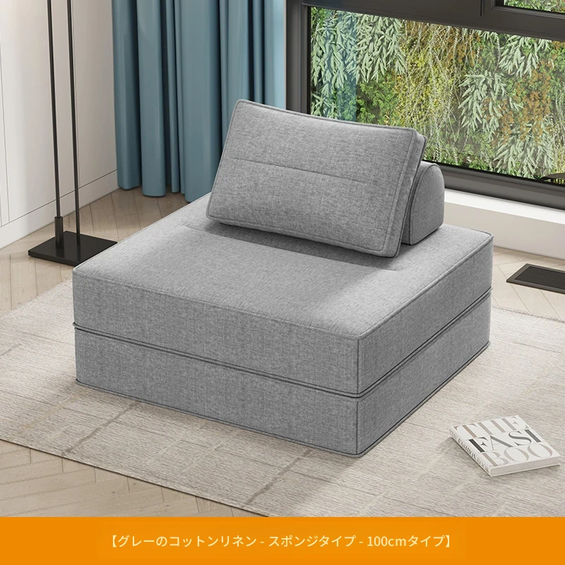 牧欣の折りたたみソファベッド - 一人用ソファと豆腐型ブロックモジュールのコンビ、畳スタイルのリラックスソファチェアで、快適な居心地を実現!