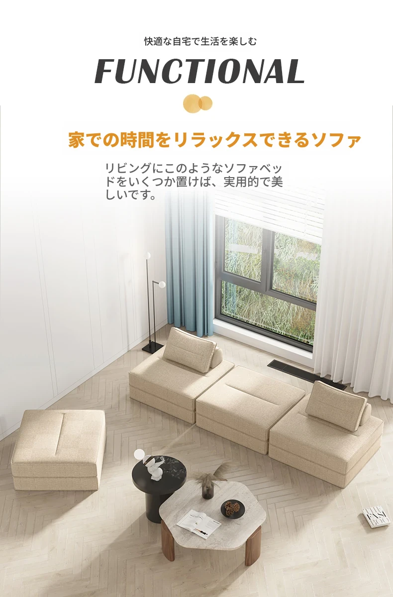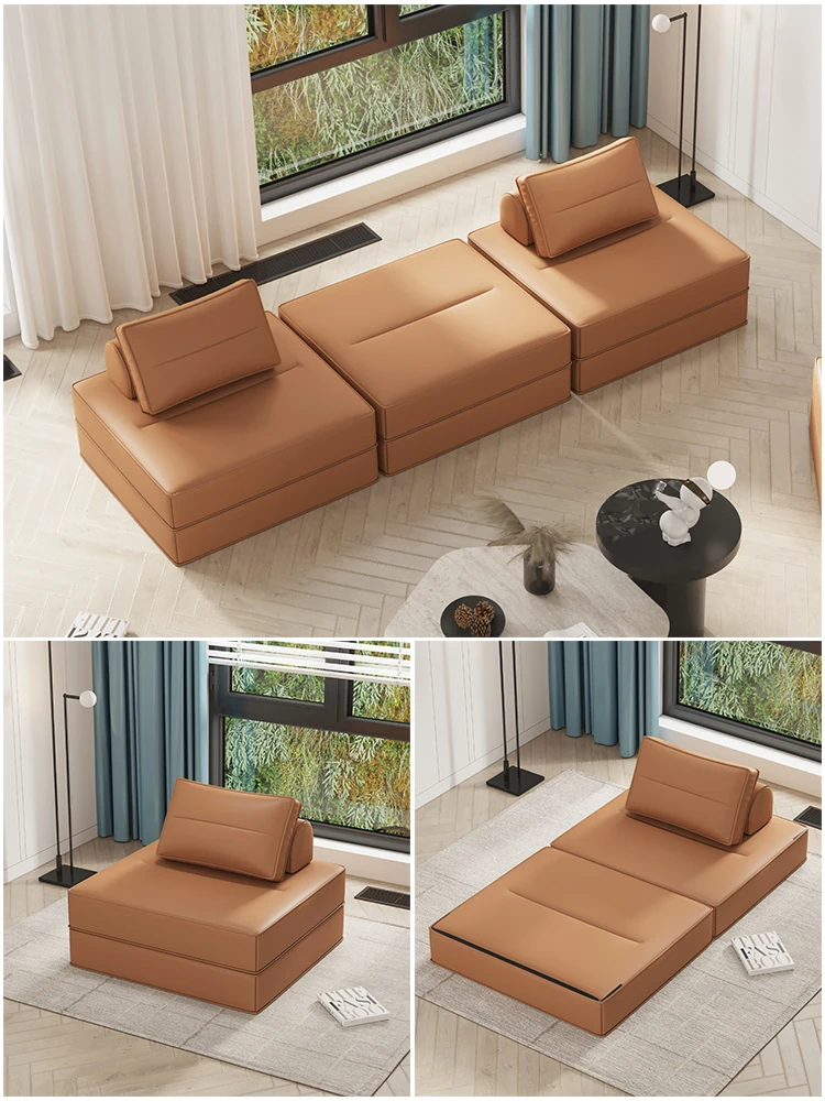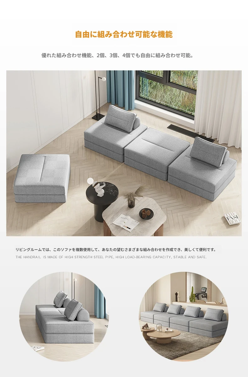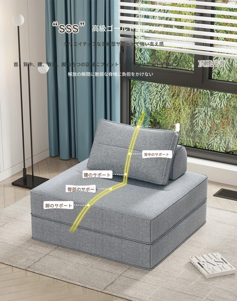 牧欣の折りたたみソファベッド - 一人用ソファと豆腐型ブロックモジュールのコンビ、畳スタイルのリラックスソファチェアで、快適な居心地を実現!