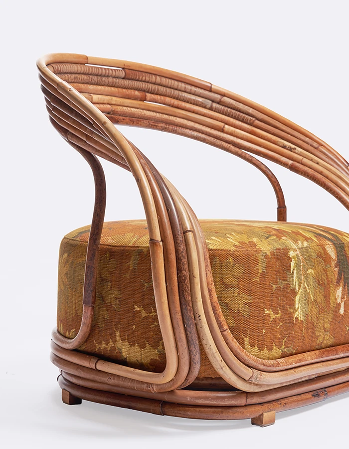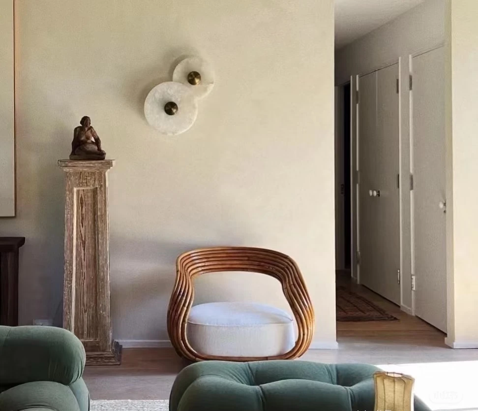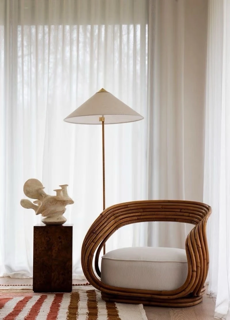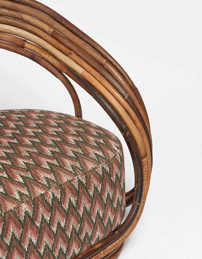 北欧デンマークの人気インフルエンサーが手掛けた、侘寂の風合いを感じる中古風デザインのラタンチェア。おしゃれで快適なリラックス空間を演出する、デザイナー製ソファチェア。