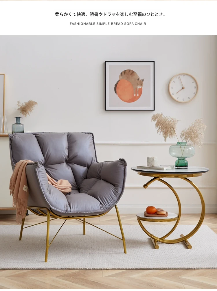 北欧風シンプルデザインのリラックスソファチェア|居間・バルコニー・寝室に最適!アートな雰囲気で長時間座っても快適|軽やかで贅沢な一人用ネイルソファチェア!