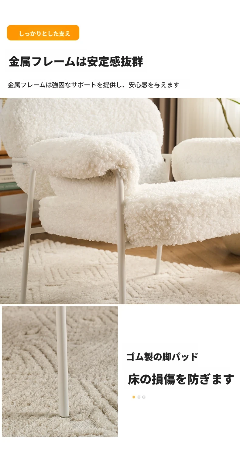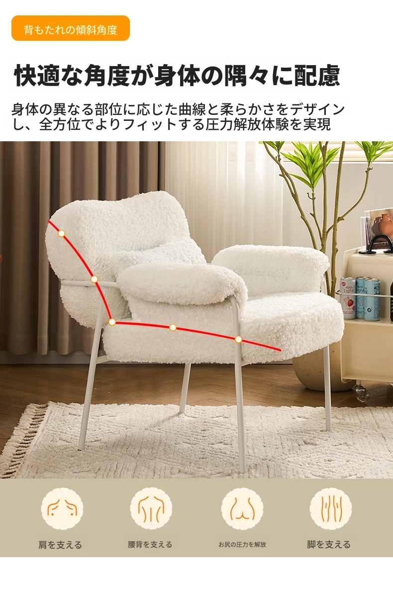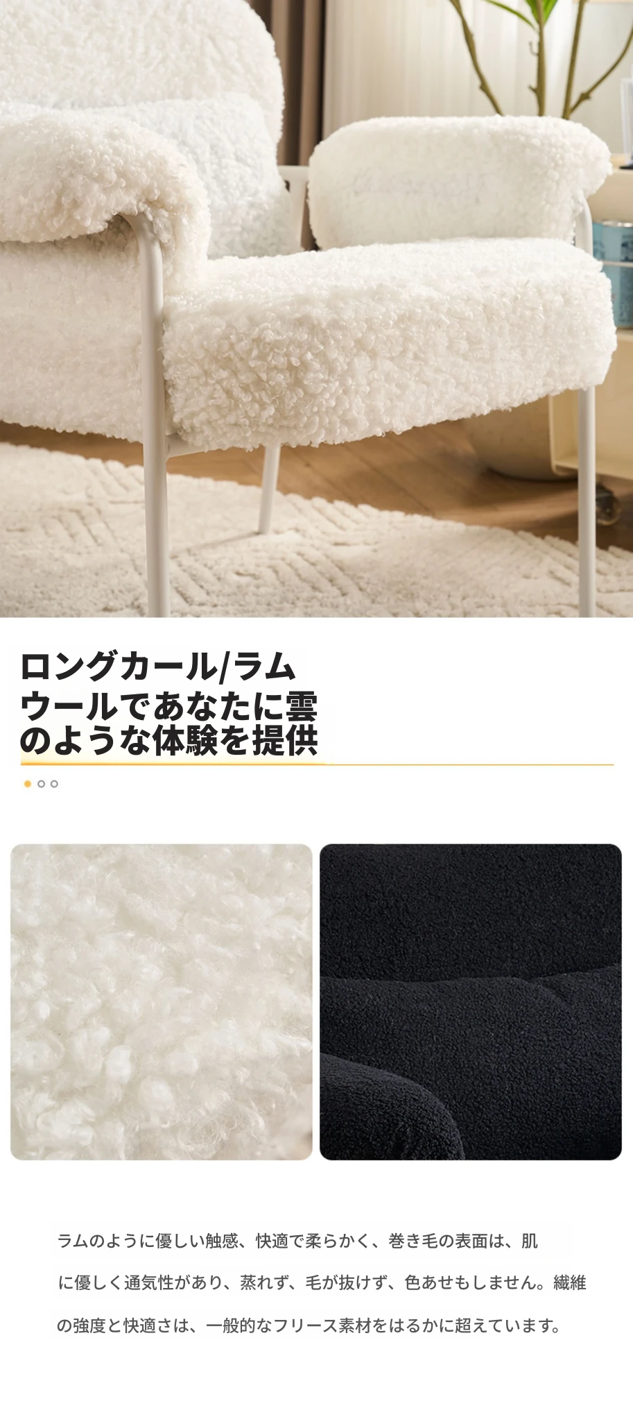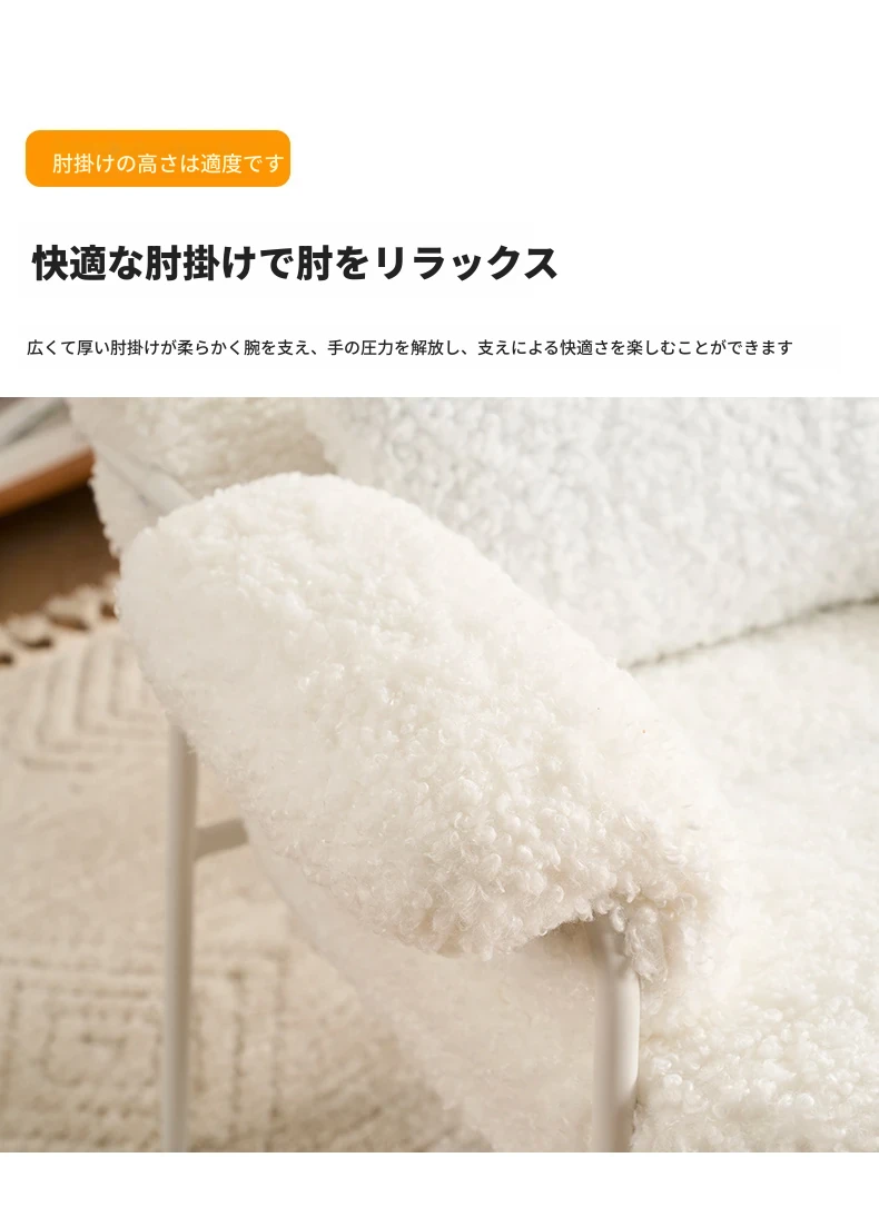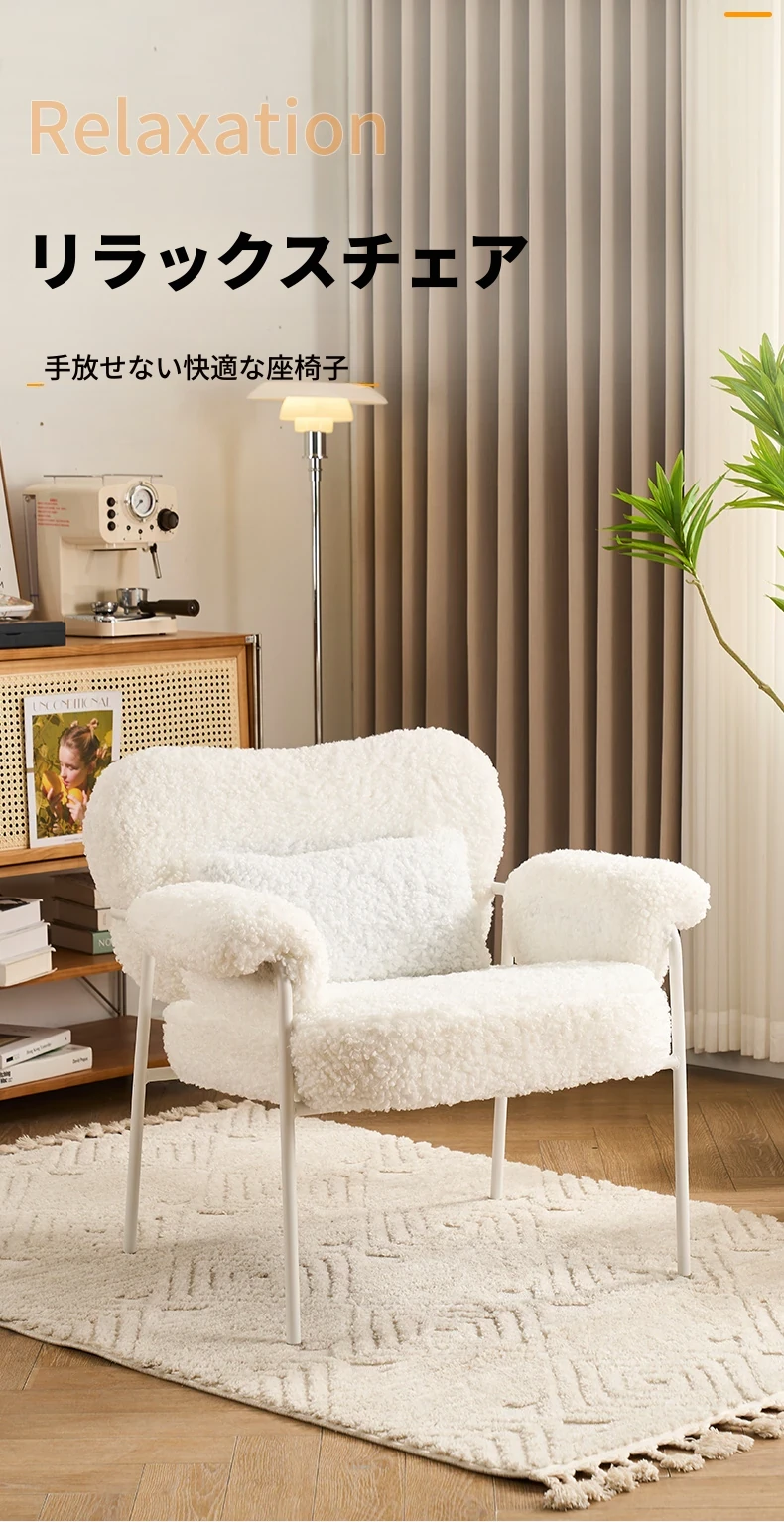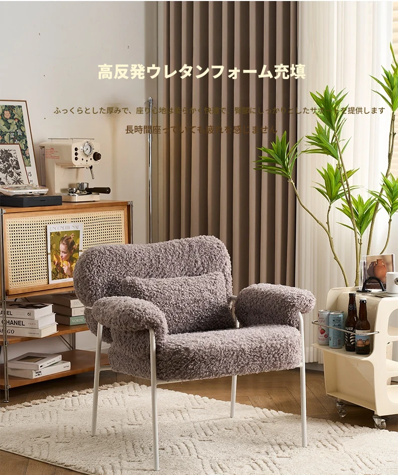 北欧風シングルソファチェア | 羊毛のようなフワフワ感 | リラックスできるデザイン | おしゃれなクリーム色のドレッサーチェア | 寝室やリビングにぴったり!