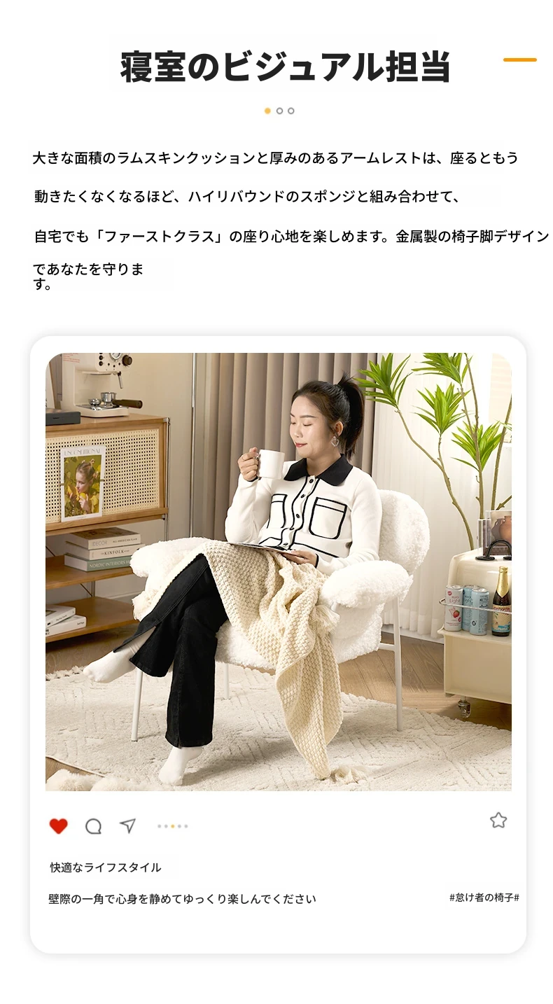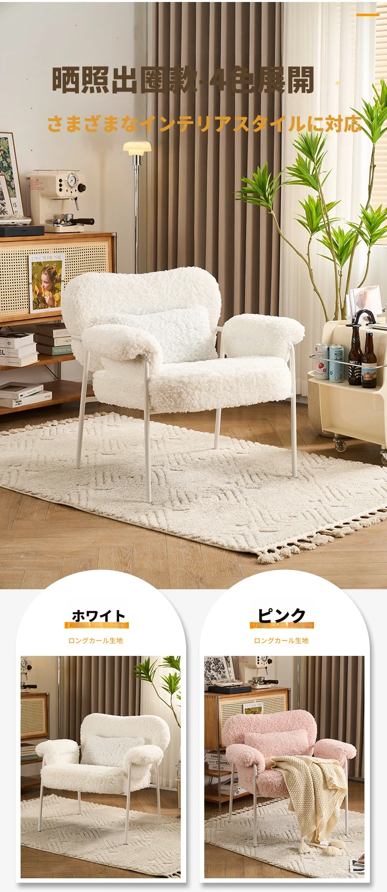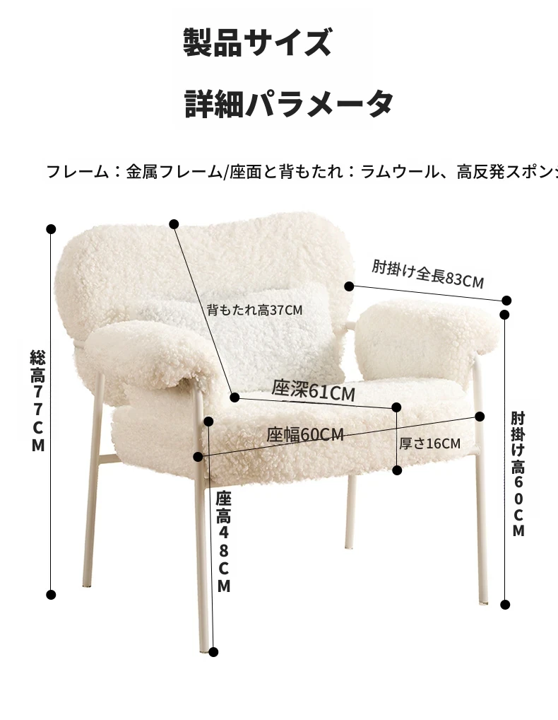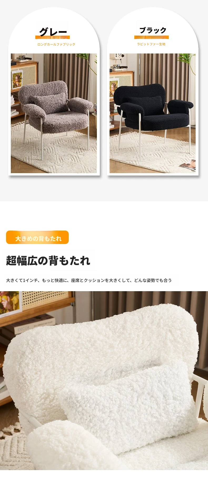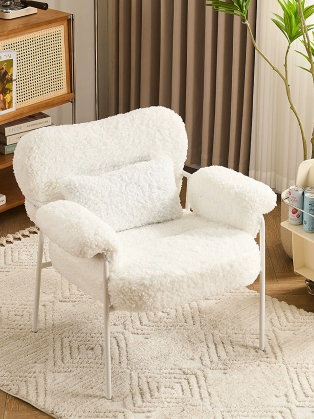 北欧風シングルソファチェア | 羊毛のようなフワフワ感 | リラックスできるデザイン | おしゃれなクリーム色のドレッサーチェア | 寝室やリビングにぴったり!
