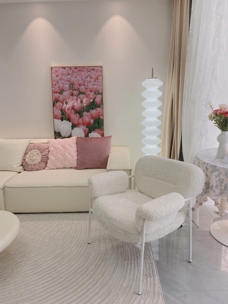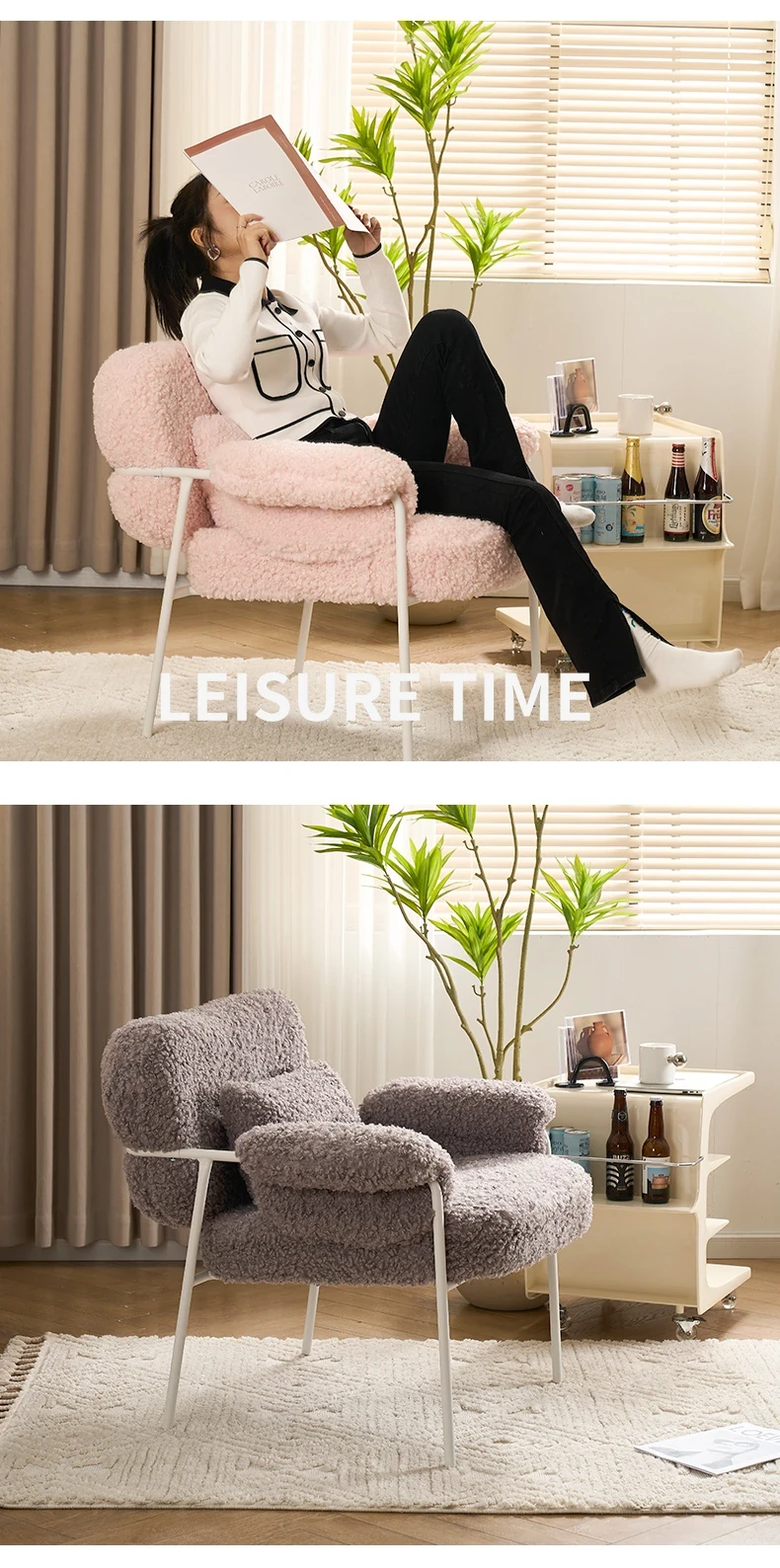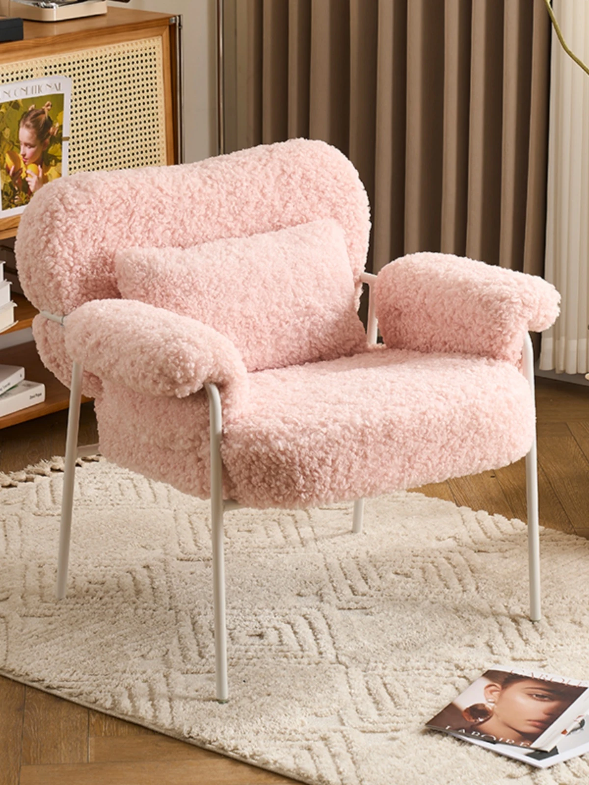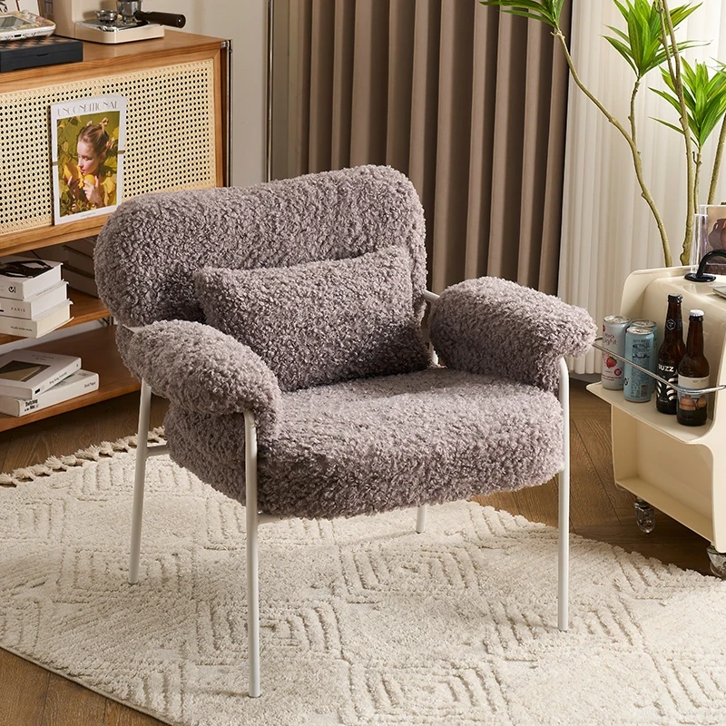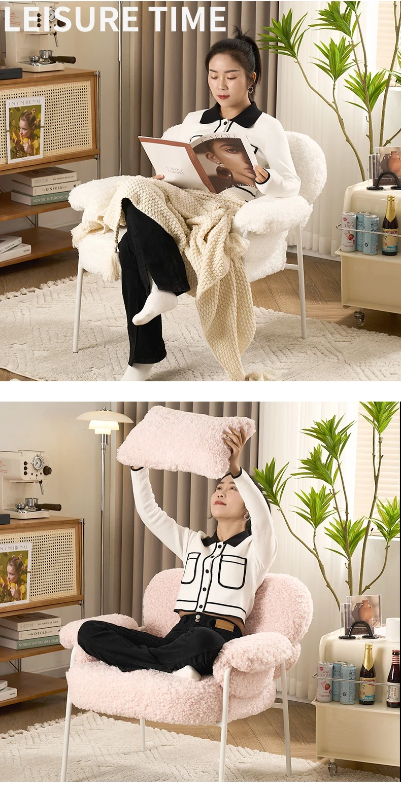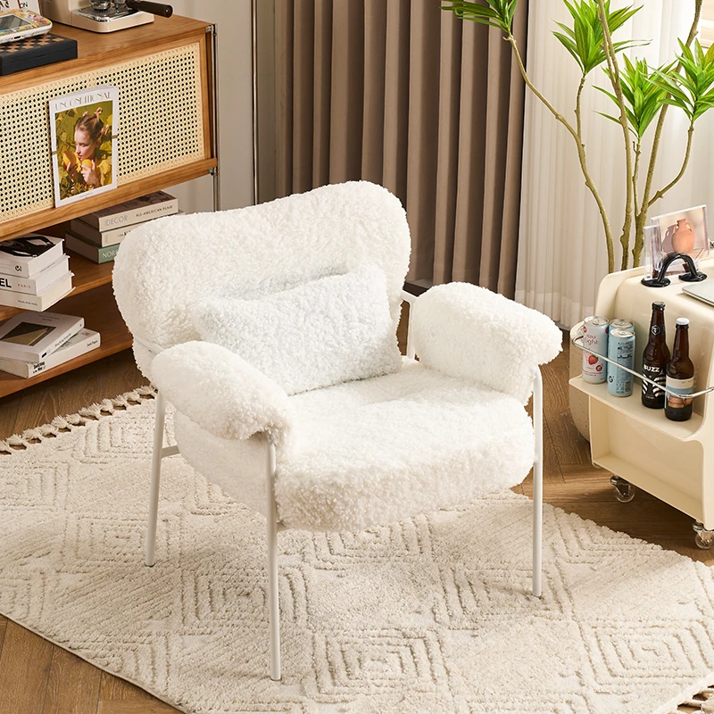 北欧風シングルソファチェア | 羊毛のようなフワフワ感 | リラックスできるデザイン | おしゃれなクリーム色のドレッサーチェア | 寝室やリビングにぴったり!
