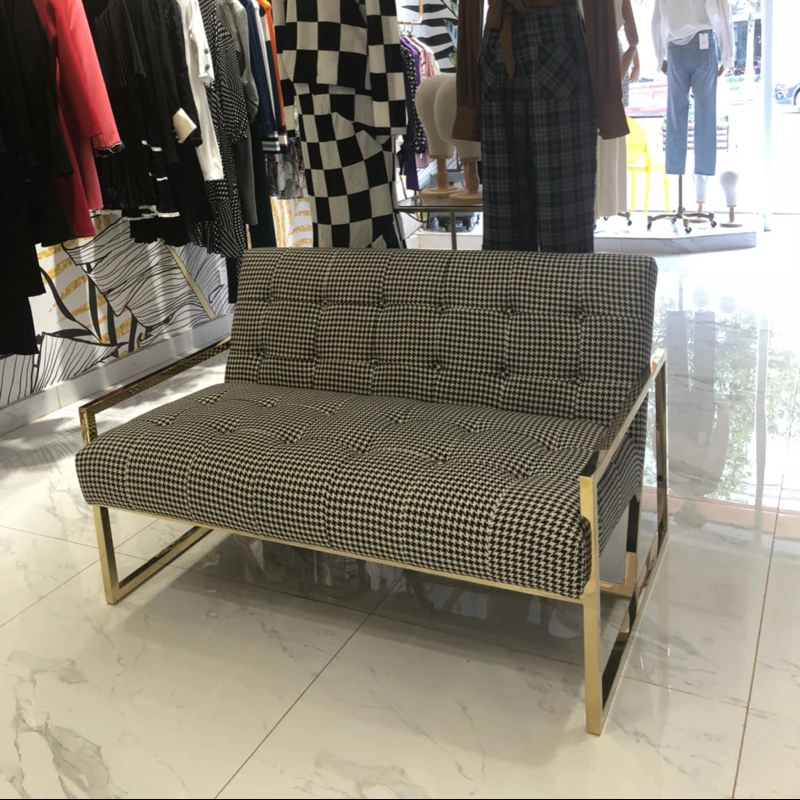 ステンレス製二人ソファ(130*68*77) ファブリックの色は備考欄にご記入ください