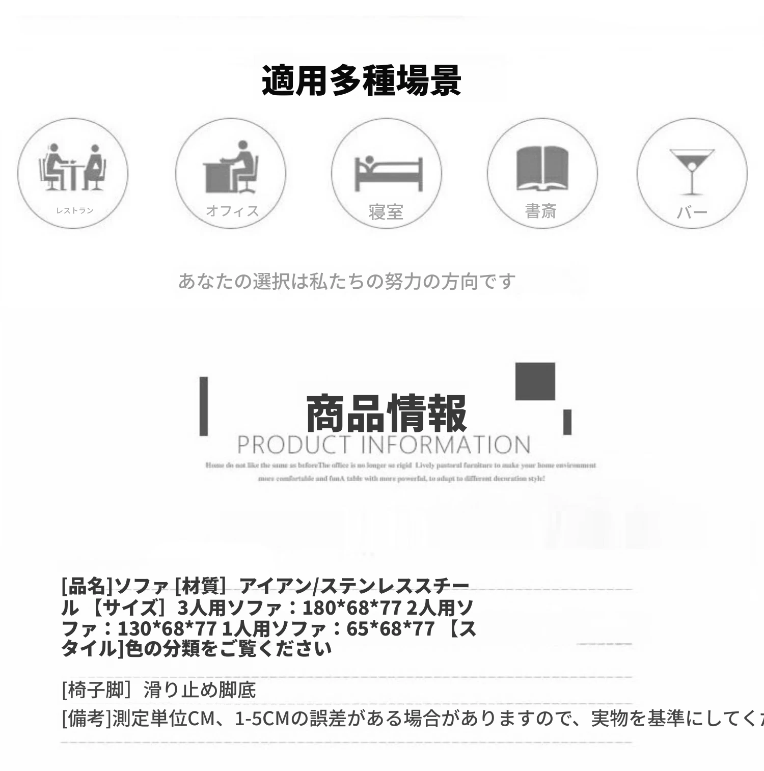 ステンレス製三人ソファ(180*68*77) ファブリックの色は備考欄にご記入ください