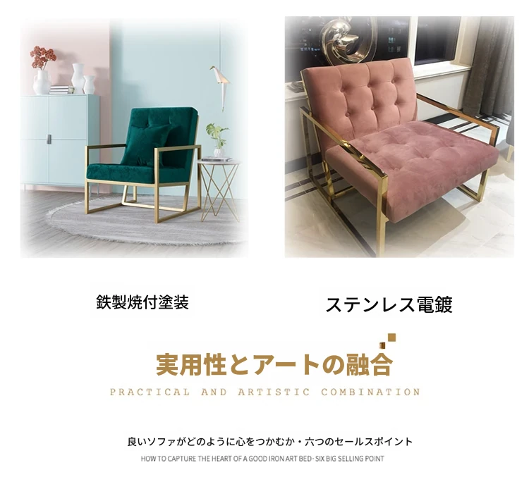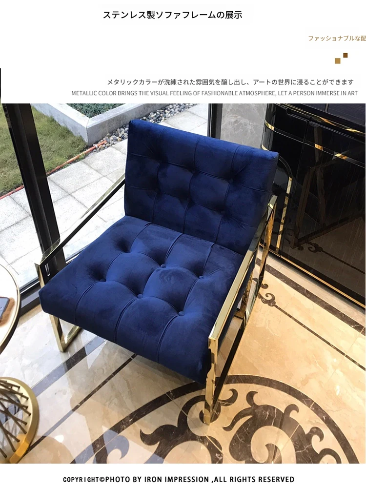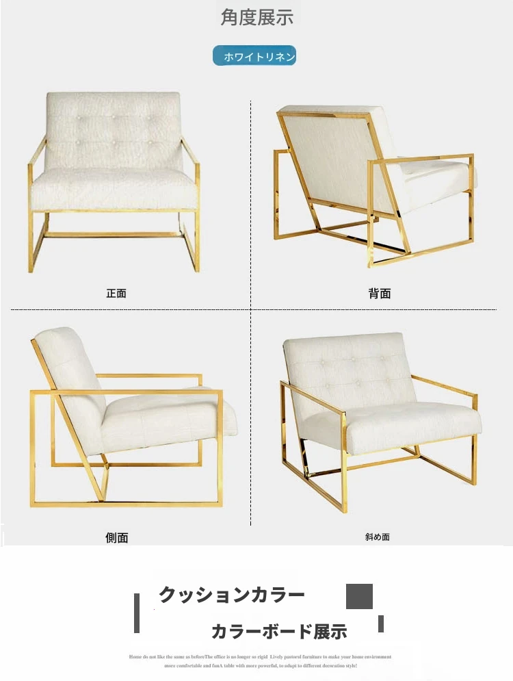 ステンレス製一人ソファ(65*68*77) ファブリックの色は備考欄にご記入ください