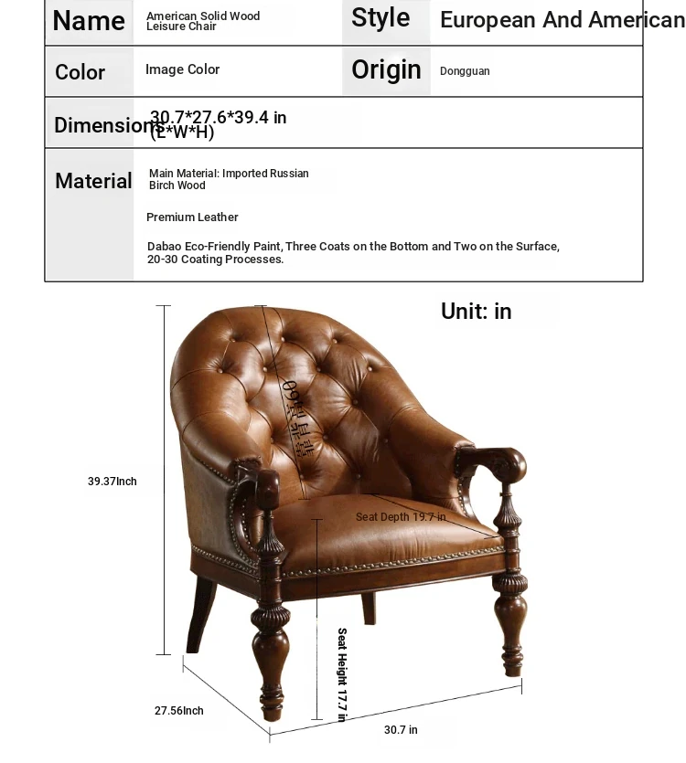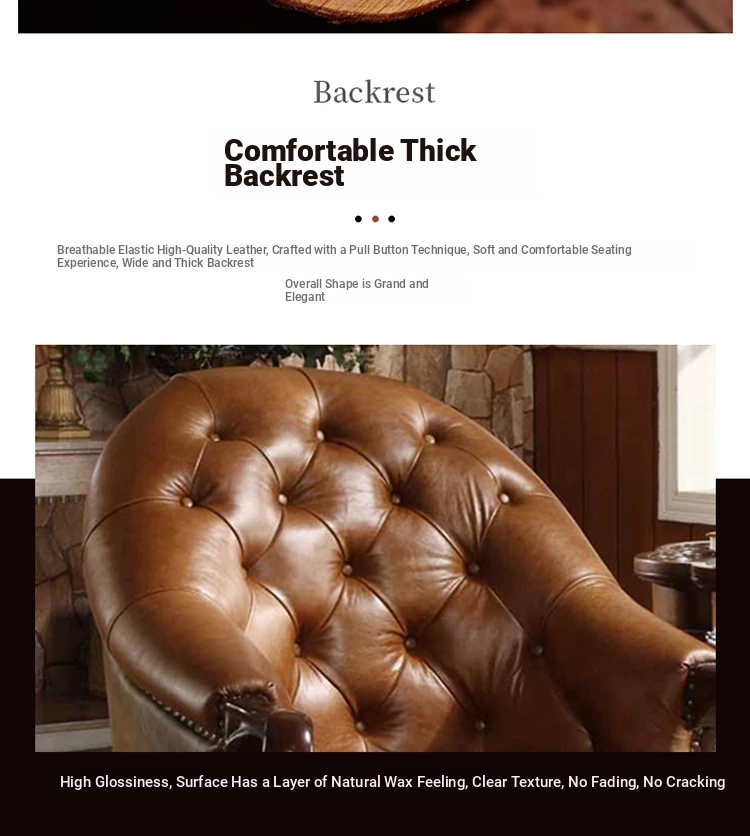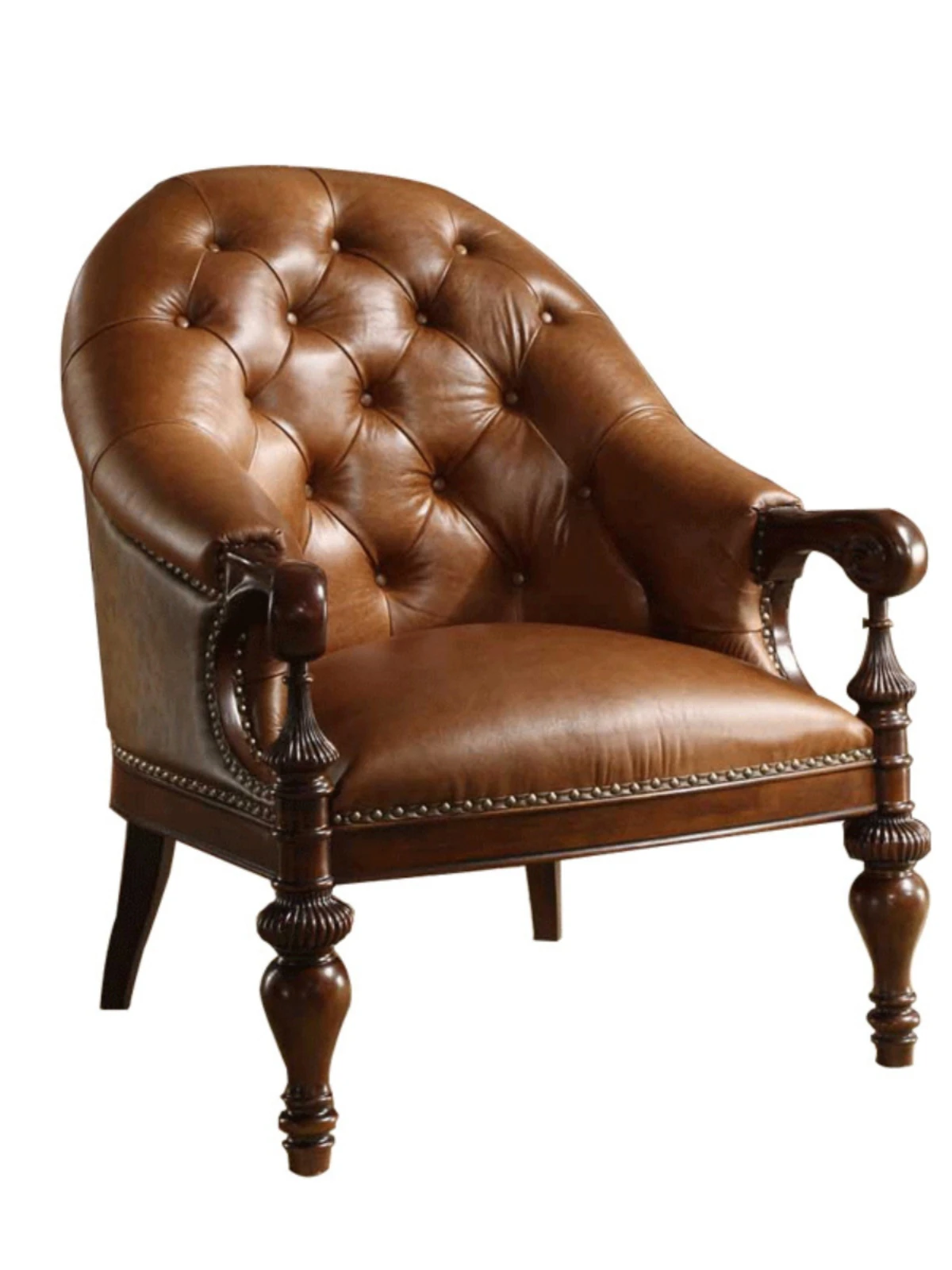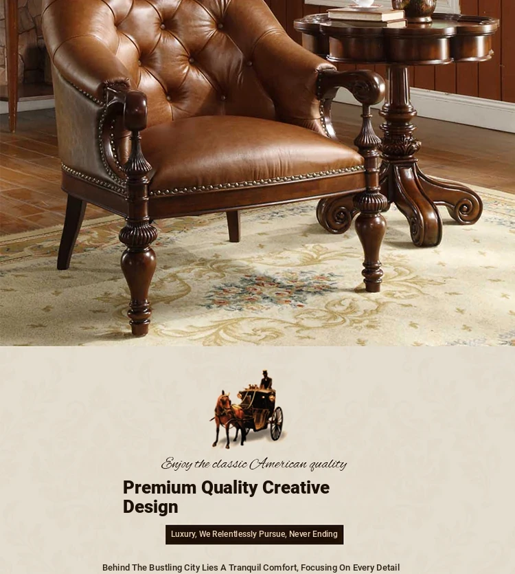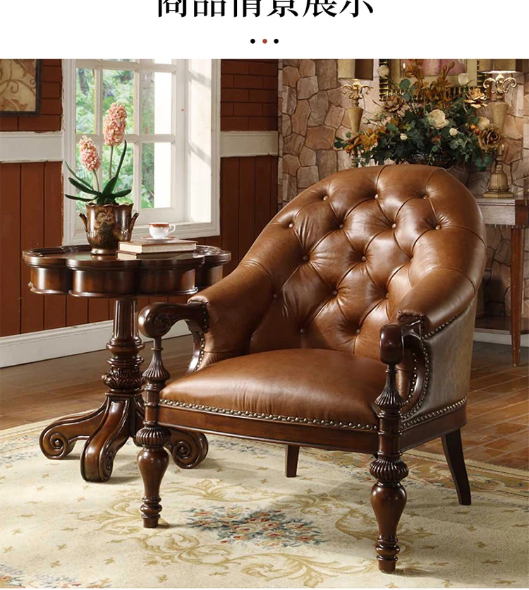 Premium American Solid Wood Leather Tiger Chair - Vintage Style Single Sofa for Bedroom and Living Room, Elegant and Luxurious Design, Perfect for Relaxation