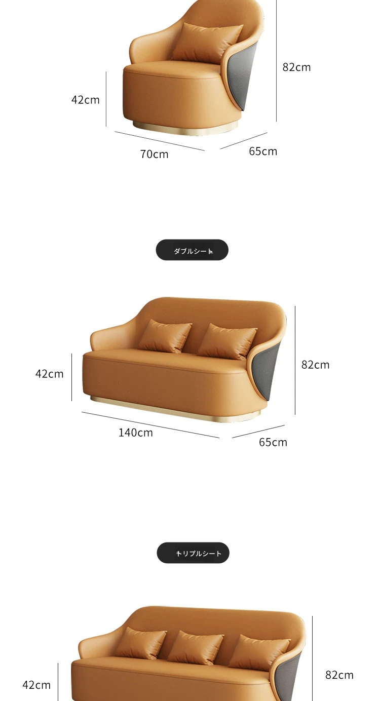 2+1/60*57CMのセット(ベージュグレー+オレンジ/合成皮革)