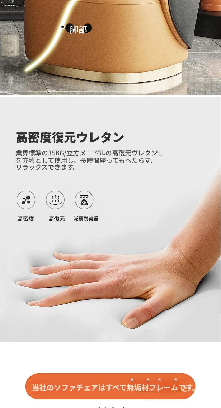 ソファチェア固定タイプ(ベージュグレー+オレンジ/合成皮革)
