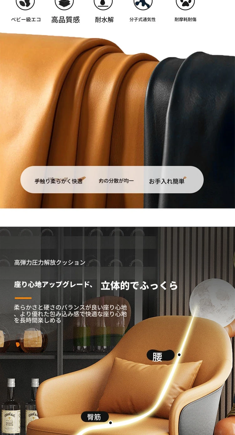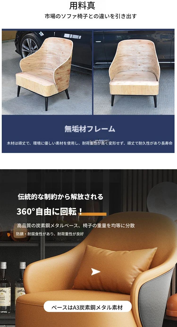 ソファチェア回転タイプ(ベージュグレー+オレンジ/合成皮革)