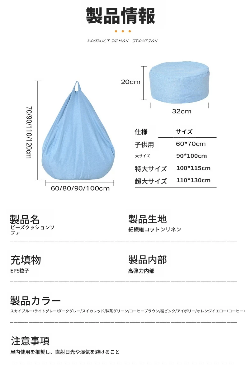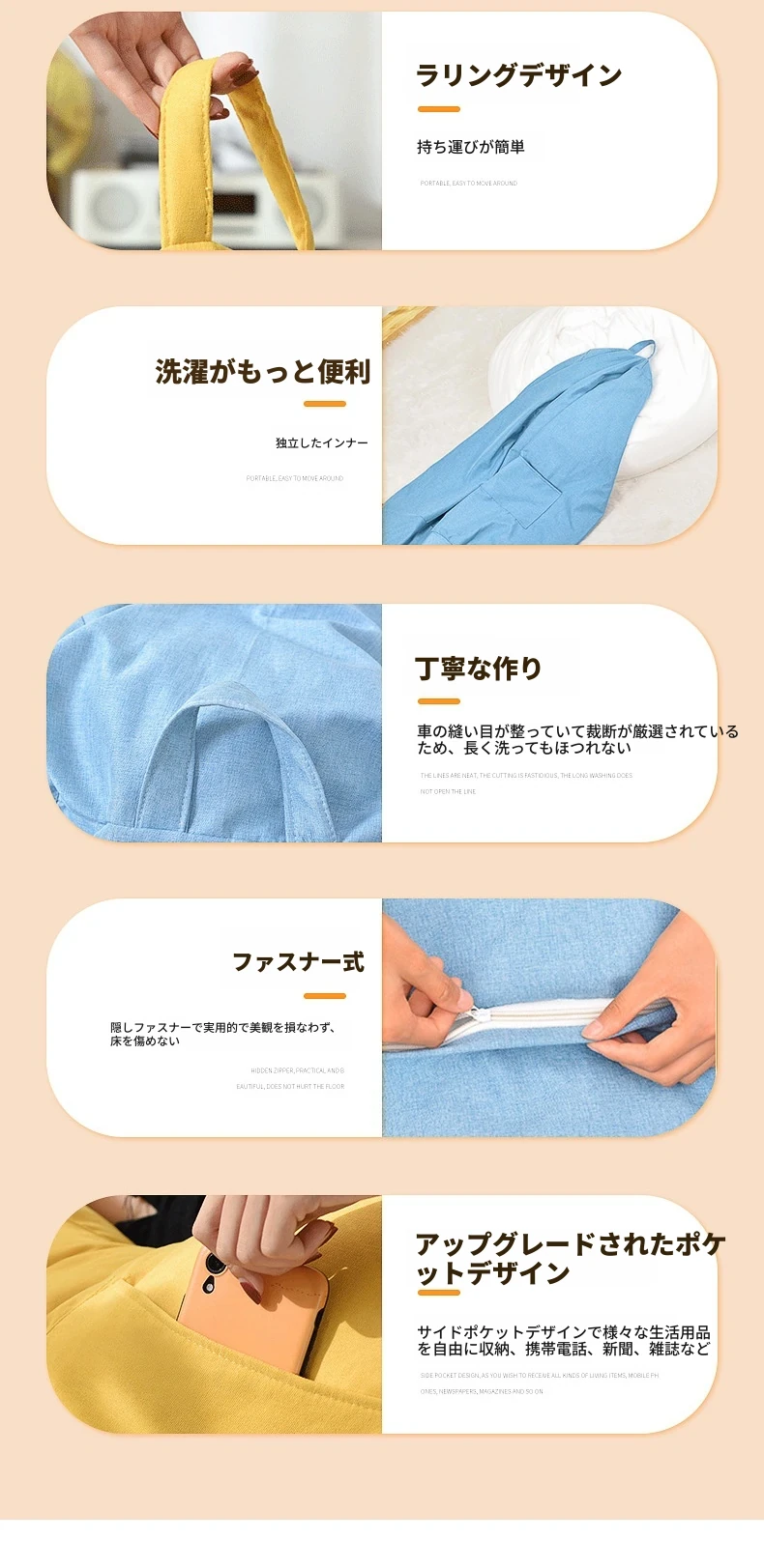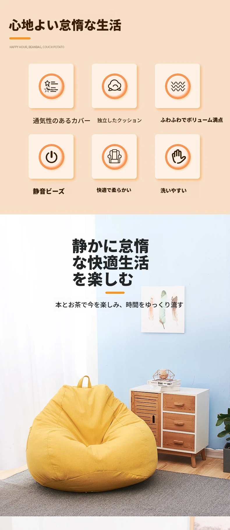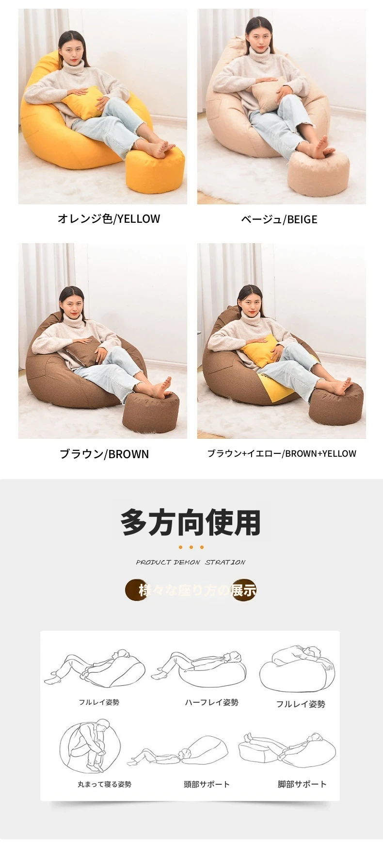 リラックスできるソファビーンバッグ - 布製の一人用ソファ、寝そべり可能!狭いスペースにもぴったりな、快適でおしゃれなデザインの怠け者ソファ。あなたの生活空間をもっと楽に!