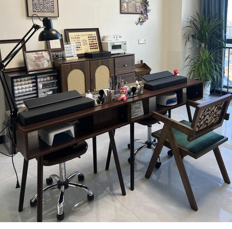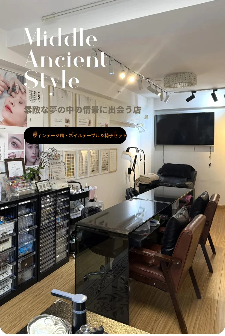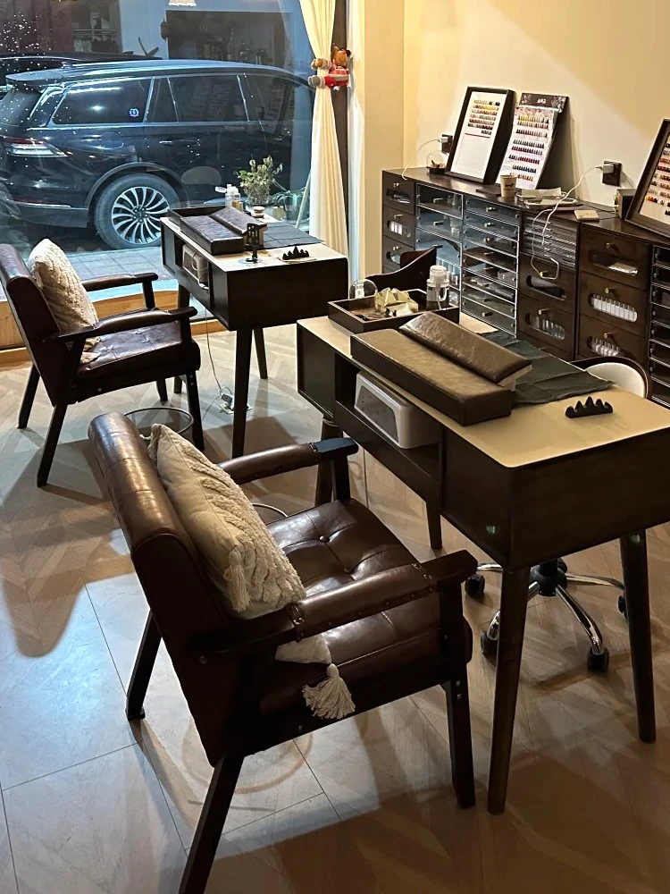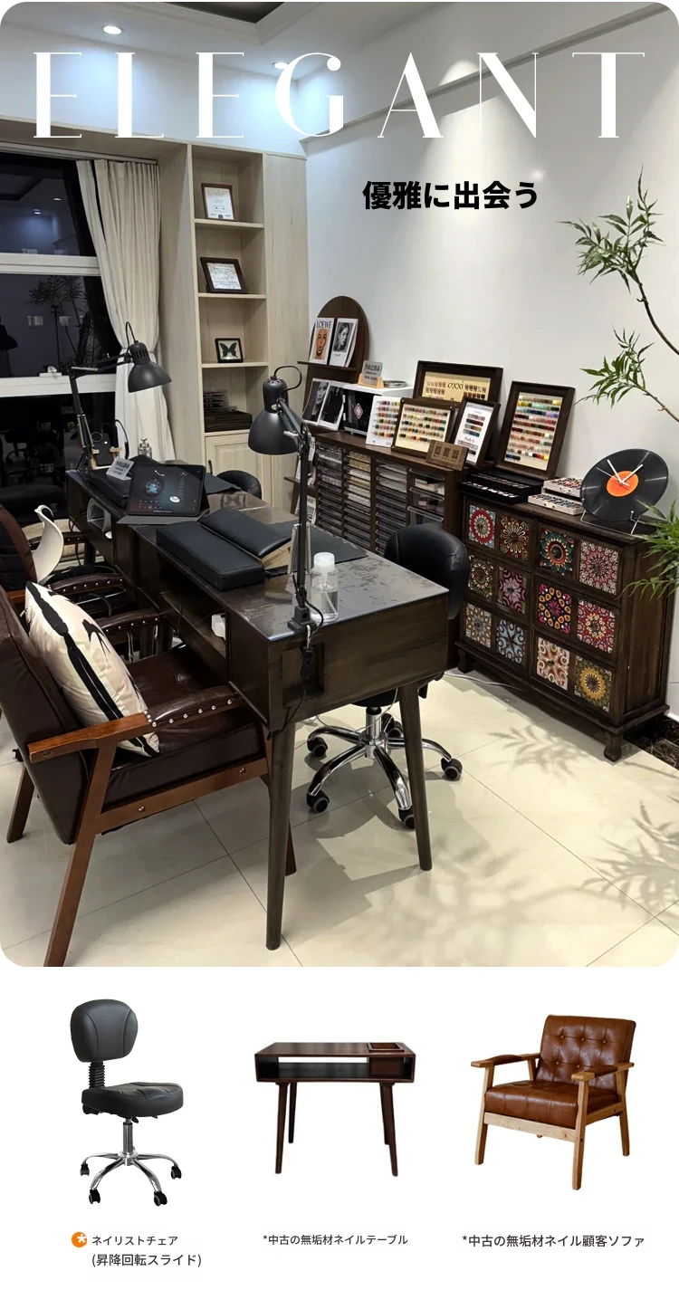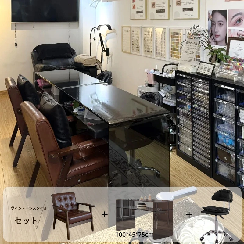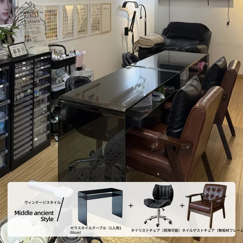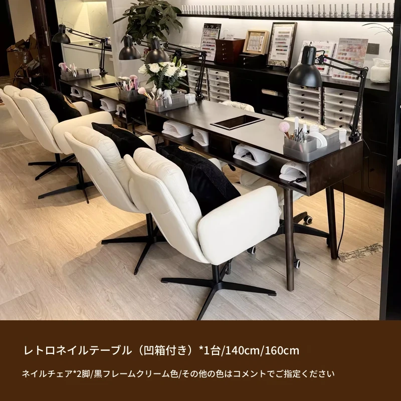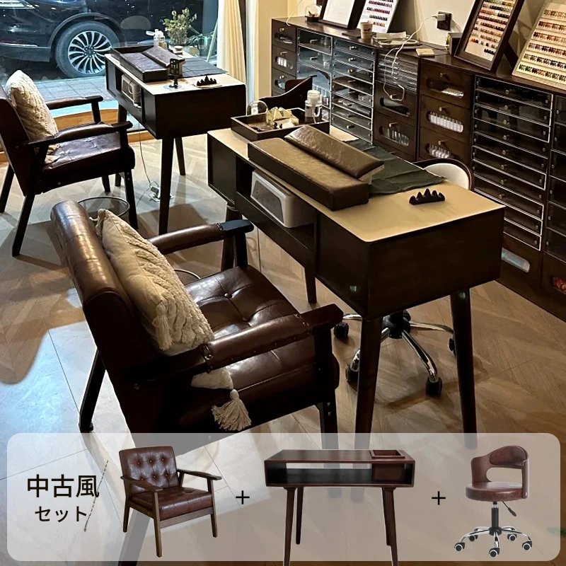 魅力あふれるネイルサロン用デスク&チェアセット!アンティーク調の高級感漂う木製ネイルテーブルとお客様専用の快適なネイルチェアで、特別なひとときを演出します。おしゃれで機能的な空間を実現しましょう!