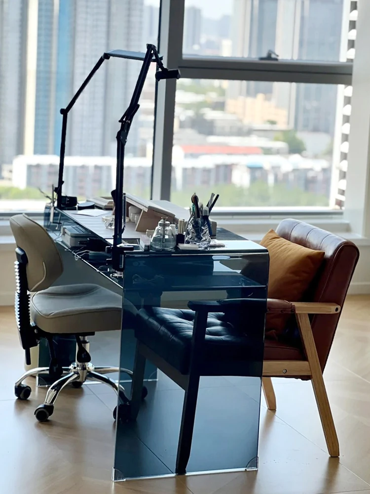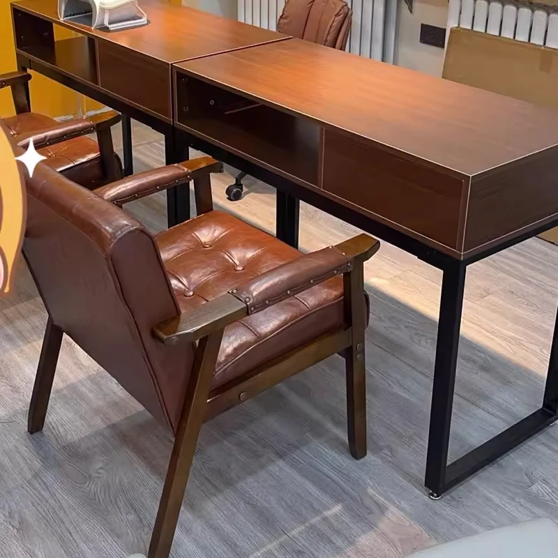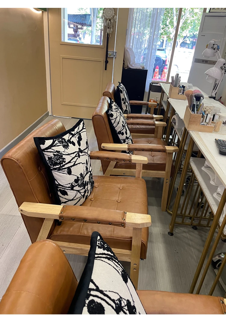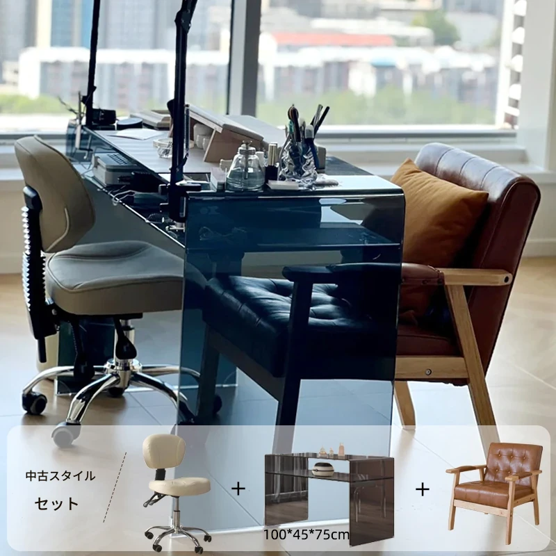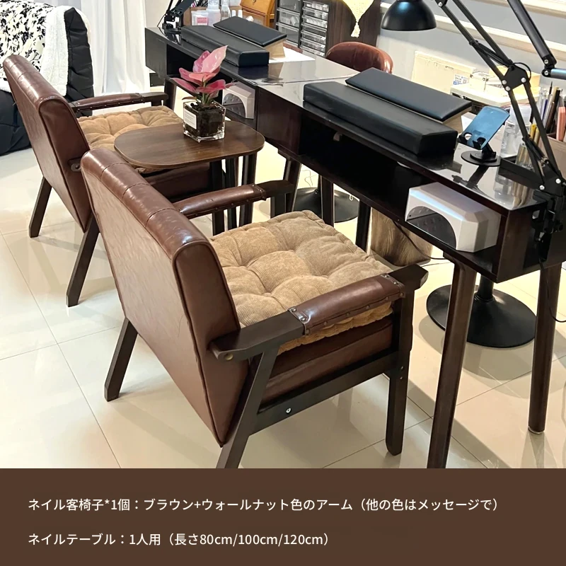 軽奢ネイル客椅子+無垢材ネイルテーブル100cm+M9#ネイリスト椅子