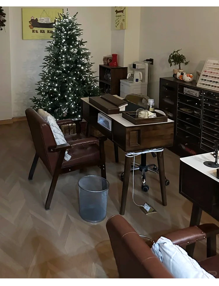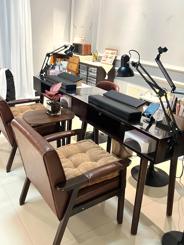 軽奢ネイル客椅子*2+無垢材ネイルテーブル140CM二人用