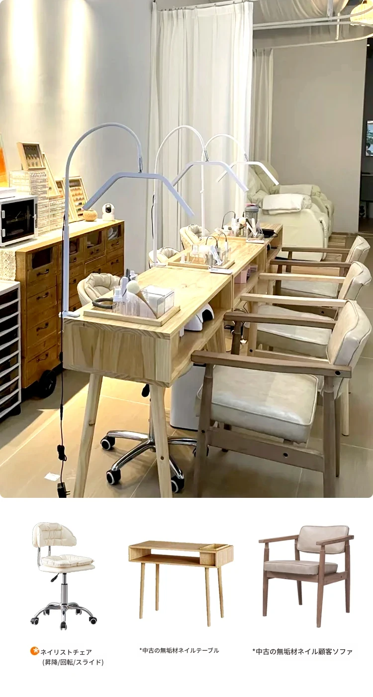 無垢材ネイル客椅子+無垢材ネイルテーブル100cm+M4#ネイリスト椅子