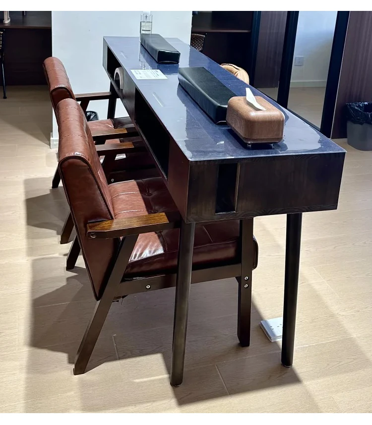軽奢ネイル客椅子*2+無垢材ネイルテーブル160CM二人用