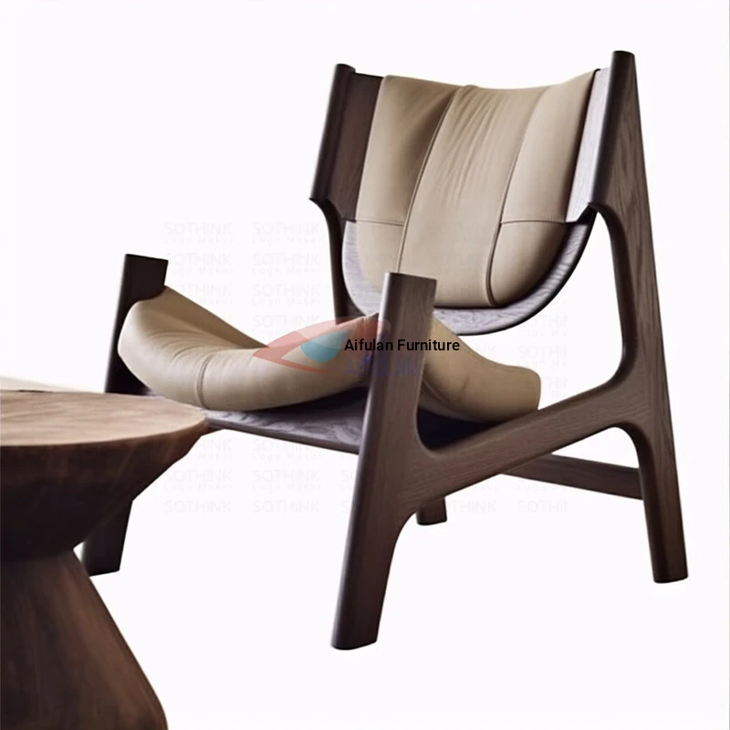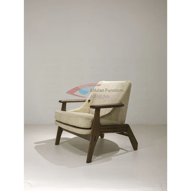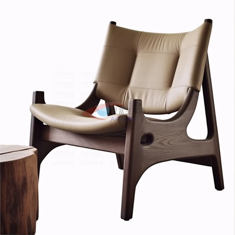 Vintage Wooden Lounge Chair - Durable Solid Wood Single Sofa for Living Room & Bedroom - Designer's Choice for Guest Reception and Relaxation