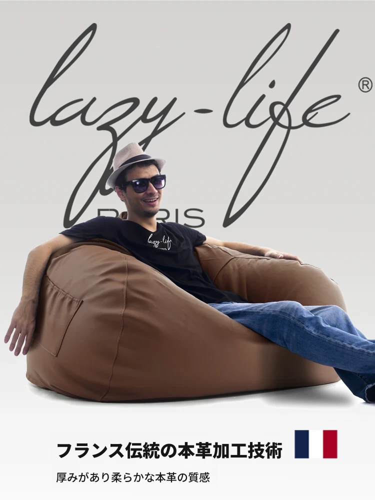 フランス製LazyLife本革リクライニングソファ - リラックスできる快適さ、バルコニーでの昼寝にも最適な巨大ビーンバッグソファ!一人掛けで贅沢な寛ぎを体験しませんか?