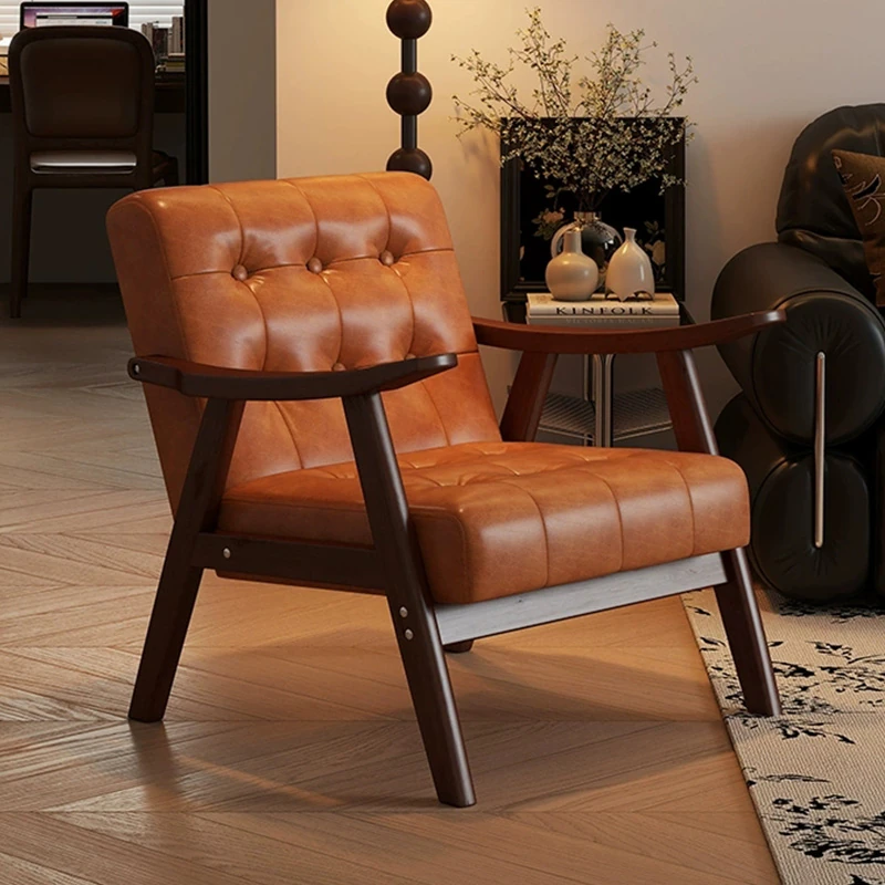 2025年新作!茶室にぴったりのレトロ風オイルワックス本革アームチェア。軽やかな高級感とヴィンテージデザインで、居心地抜群のリラックス空間を演出します。