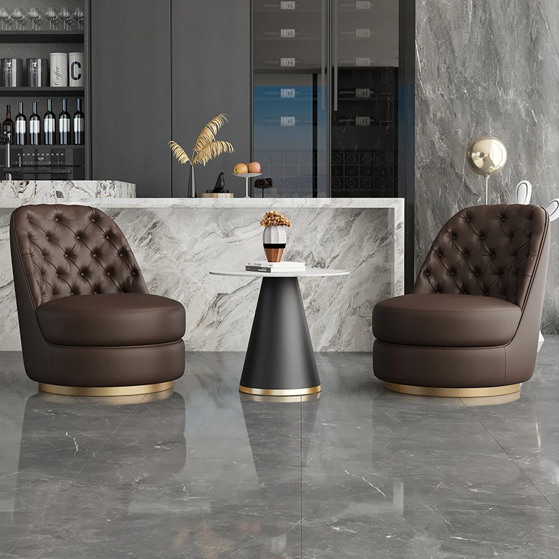 イタリアンスタイルの本革一人用ソファ、ビジネスミーティングや接客に最適な回転式リラックスチェア。オフィスやショールームでの商談にぴったりなソファセット!快適さとスタイルを兼ね備えた一品です。
