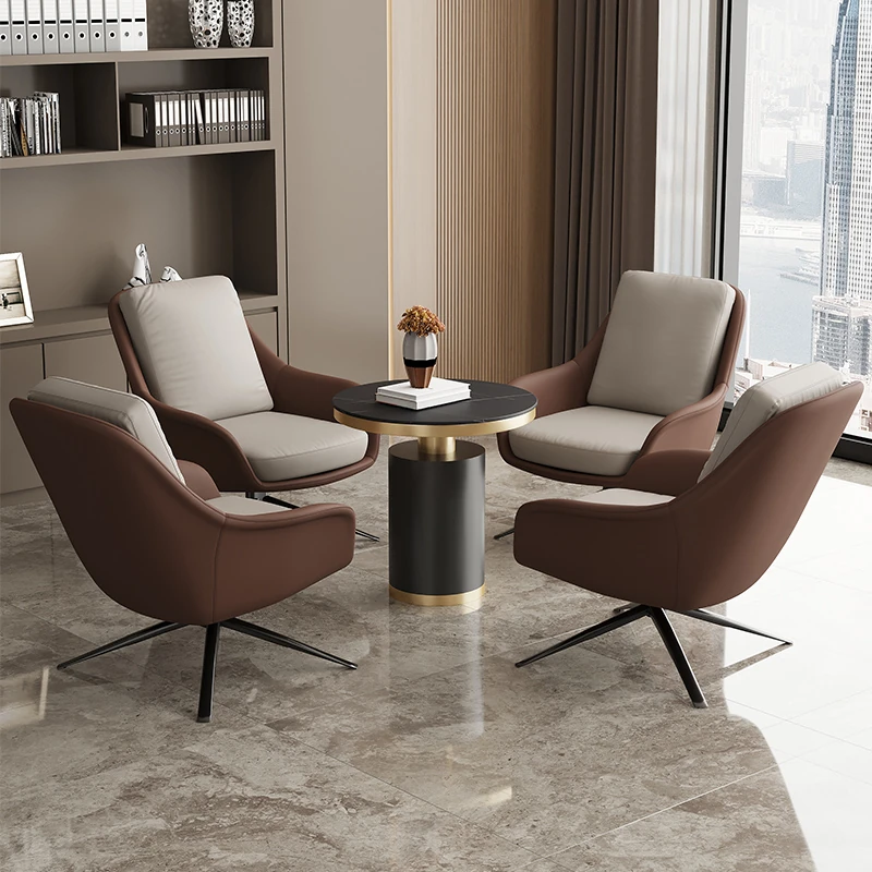 現代的な一人用ソファ ビジネス接客エリアに最適なリラックスチェア リビングルームにぴったりの軽やかなラグジュアリー オフィスにも合うシンプルスタイルのミーティングテーブル&チェアセット