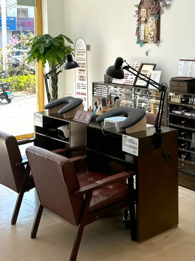 美甲サロンに最適!アンティーク風の木製ソファチェアセット - ネイルデザイナー専用、快適な顧客用チェアで贅沢なひとときを提供します。美しさと機能性を兼ね備えたデザインで、サロンの雰囲気を格上げ!
