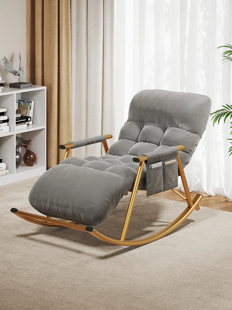 リラックスソファ - 寝転がっても使える!家庭用、寝室やリビングに最適なロッキングチェア。バルコニーでのくつろぎタイムにもぴったり!折りたたみ式で、昼寝にも最適な大人用リクライニングチェアです。