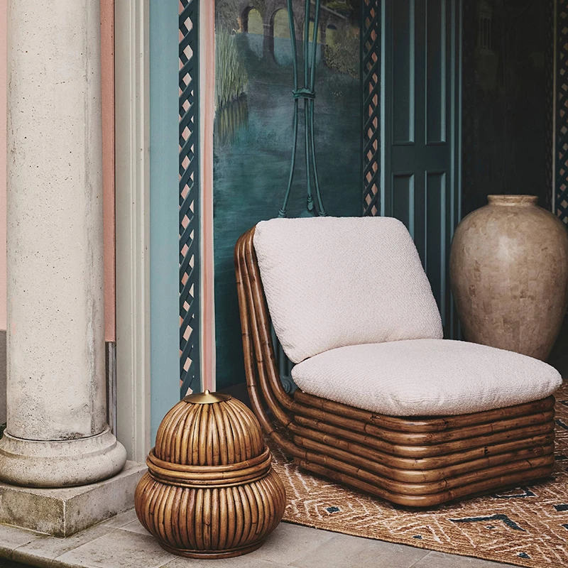 北欧デンマークの人気ホテルスタイル!レトロなラタン製クリームフレンチデザインのソファチェア。デザイナーによる手編みのラタンチェアで、優雅な空間を演出!